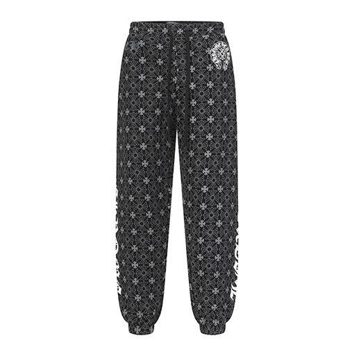 クロムハーツ 全体にさりげなくサンスクリット文字をプリントしたカジュアルパンツは、ブランドの存在感を控えめに、しかし確実に感じさせるアイテムです。高品質な素材、計算されたシルエット、落ち着いた配色と上品なプリントが融合し、日常から特別な