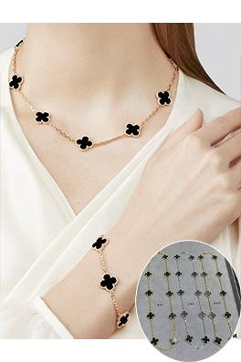 繊細なゴールドチェーンに、小さなクローバー型モチーフが等間隔に配置されており、