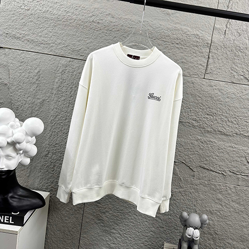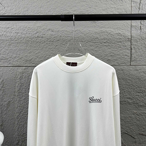 商品说明 | ダブルGロゴと胸元のミニマルなレタリング刺繍が際立つデザインは、控えめなラグジュアリー感を醸し出し、グッチのブランドアイデンティティを完璧に体現しています。流れるようなラインと繊細な質感が特徴的な精巧な刺繍は、高級感を際立たせています。クラシックなラウンドネックとゆったりとしたフィット感が、快適でカジュアルな着心地を実現。男女問わず、カップルにも最適です。 |