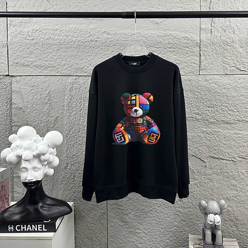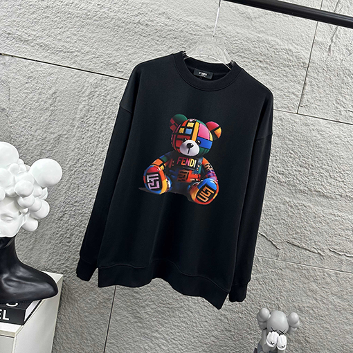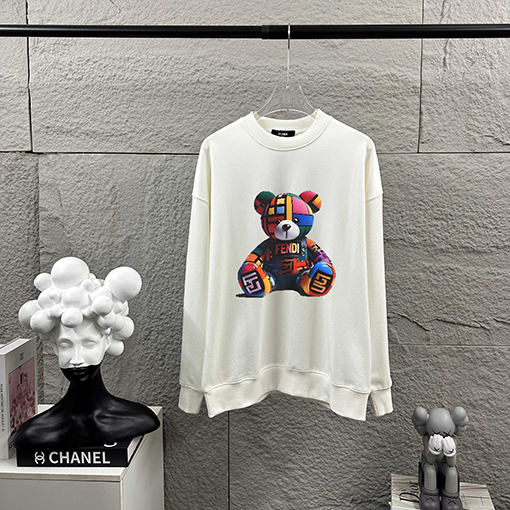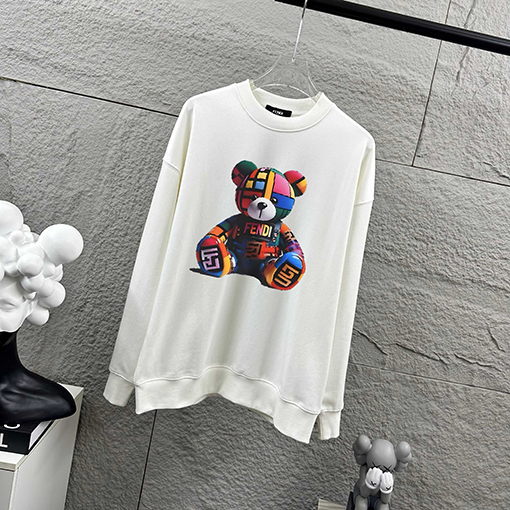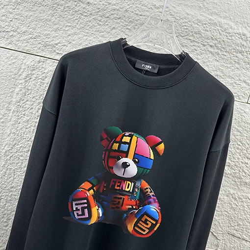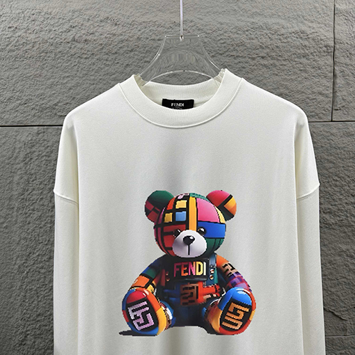 商品说明 | フェンディの2025年初秋冬コレクションは、アイコニックな愛らしいベアプリントを特徴とし、ブランドの遊び心とラグジュアリーさを完璧に融合しています。フロントのベア柄は高精度のデジタルプリント技術を用いてプリントされており、明瞭な色の層と繊細で立体的な質感が、際立つ芸術的な視覚効果を生み出しています。 |
