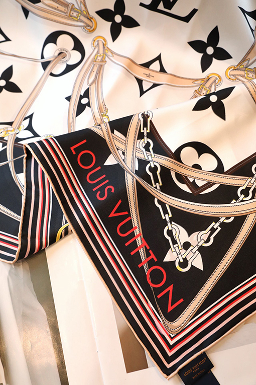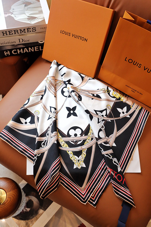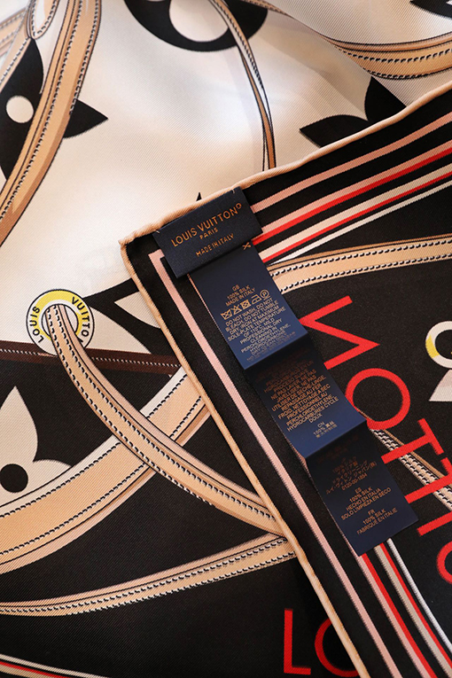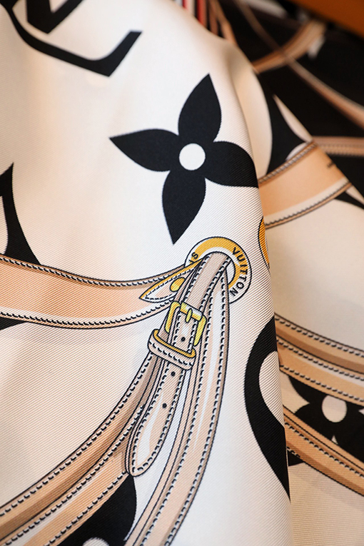 商品说明 | この方巾の最大の特徴は、モノグラム花柄を形作るリボン、南京錠、チェーンのモチーフ。それぞれが重なり合い、ブランドの皮具シリーズのエッセンスを忠実に表現しています。細かく丁寧に描かれたこれらの装飾は、視覚的にリッチなレイヤーを生み出し、持つだけで格上げされる存在感を演出。デザイン性の高さがファッション通からも高評価を獲得しています。 |
