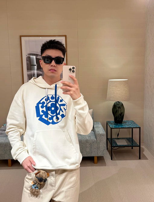 商品说明 | このセーターは、全体として、厚くてしっかりしていて、なめらかで柔らかく、着心地が非常に良い、高ポンドの純綿テリー生地で作られています。パーカーの表面には、NIGOの最も有名な動物のトーテムに触発されたブランドの象徴的なルイヴィトンメイドのアヒルのパターンバッジ刺繍が施されており、共同の精神と自由意志のトーテムロゴを表しています。 |