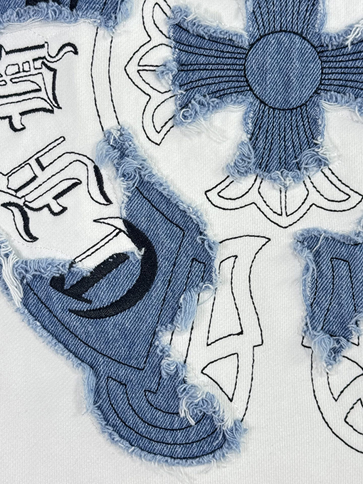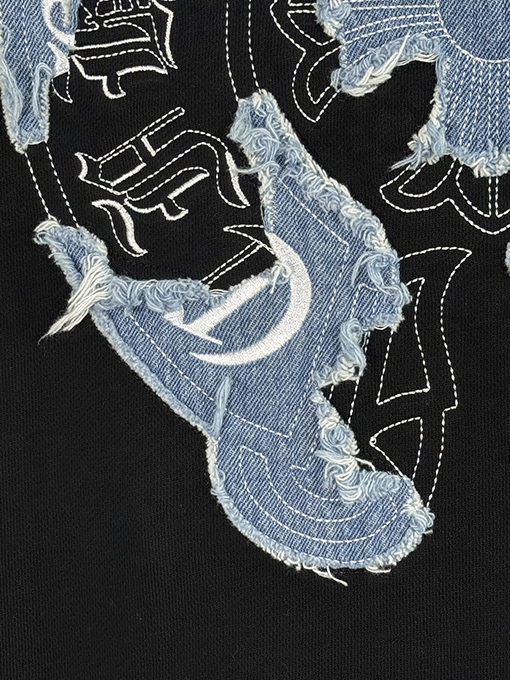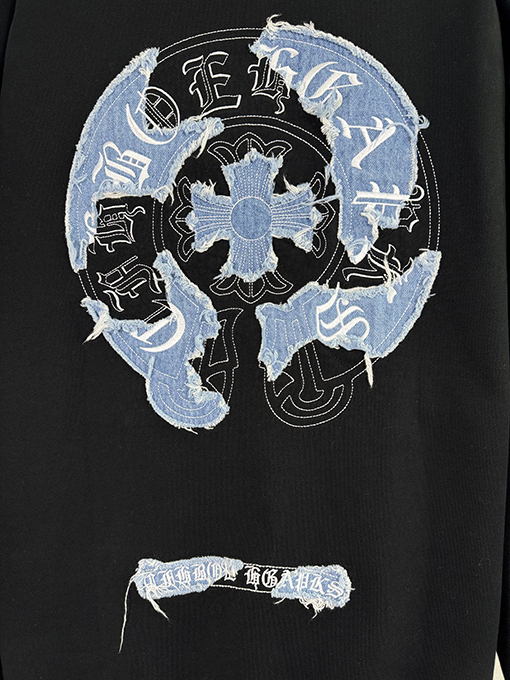 商品说明 | 胸と背中は、大面積の高密度アップリケ刺繍と繊細な立体刺繍のアルファベット技術を組み合わせて、立体感が強く、細部が豊かで、色の遷移が自然で、クロムハーツの一貫した重金属パンク美学と暗黒宗教視覚記号を表現している。すべての刺繍はブランドの細部への究極の追求を体現している。 |