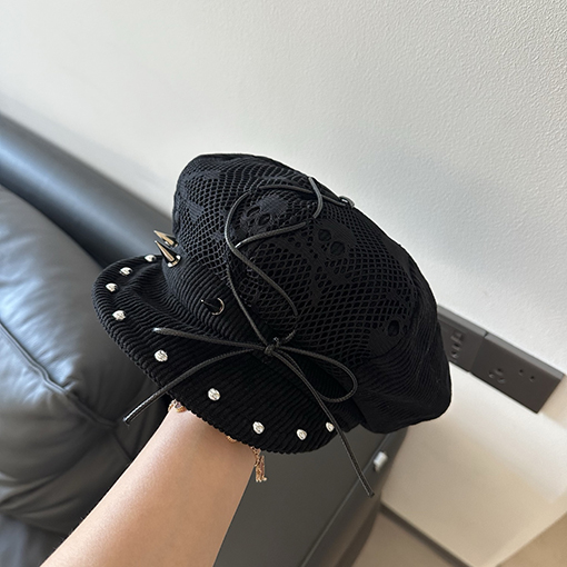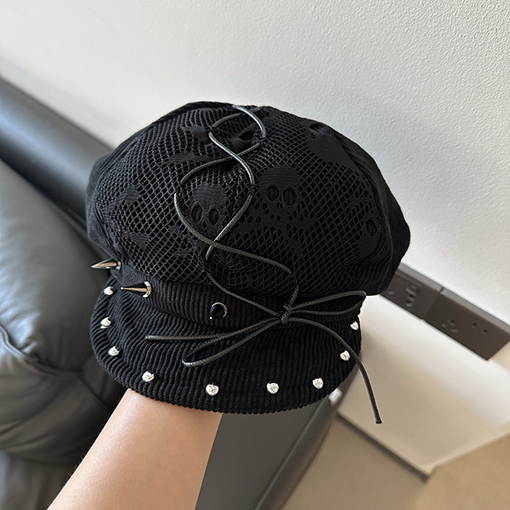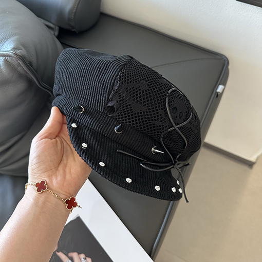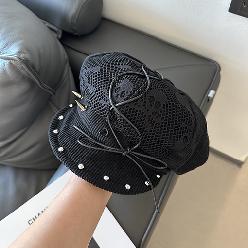 レトロとタフなストリートスタイルを融合させ、ユニークなハイストリートの質感を表現した、クロックスハートクロスのトレンドブランドのリベット八角形の帽子。帽子の本体は、しっかりとしたフォルムと優れた通気性を備えた高密度の精紡綿で作られています。8ピースの立体的なカットは、頭の形にフィットし、エレガントで反抗的なシルエットを作り出します。