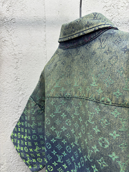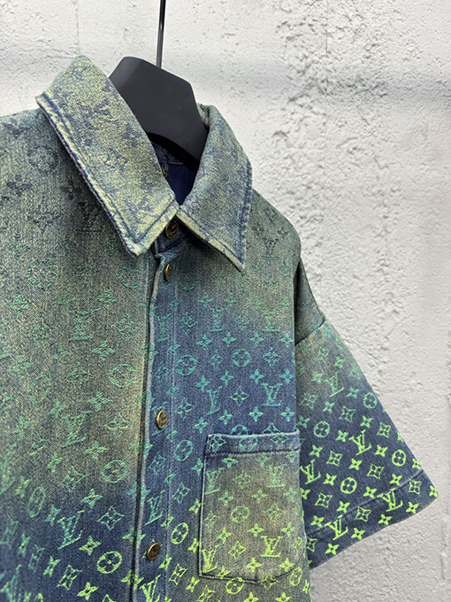 商品说明 | LOUIS VUITTONのグラデーションジャカードデニムシャツは、カジュアルなデニム素材をラグジュアリーに昇華させた逸品。淡い色の移ろいが織りで表現され、まるで水彩画のような奥行きを感じさせます。日常着としても特別なシーンでも映える万能な一着です。 |