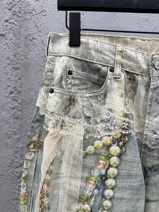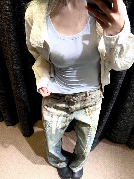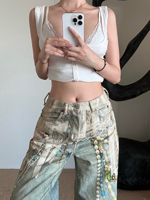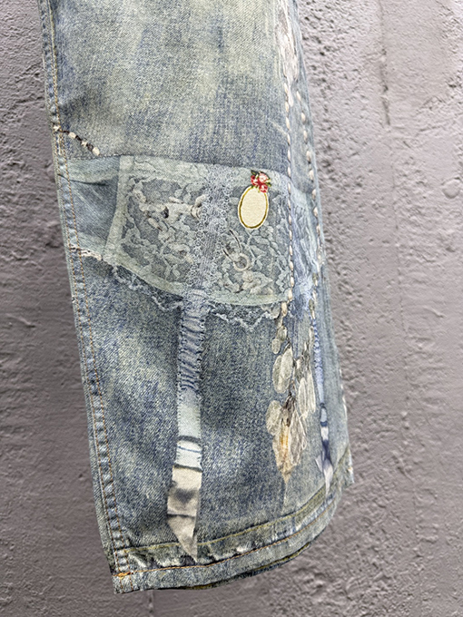 商品说明 | レース素材はさりげなく配置され、デニムのラフな質感とのコントラストを生み出しています。カジュアルにもドレスライクにも着こなせるため、日常のコーディネートに新鮮さをプラス。特にシンプルなトップスとの組み合わせで映えるデザインです。 |