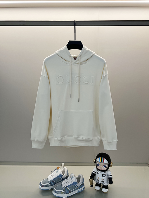 商品说明 | グッチの420グラムの純綿パーカーは、シンプルな無地の美学と3次元の凹凸のエンボス加工されたブランドのロゴ技術を備えており、贅沢と個性の完璧な融合を示しています。高重量420グラムの純綿生地を使用し、厚くて柔らかく、保温性と通気性を兼ね備え、快適さと質感を同時に実現しています。 |