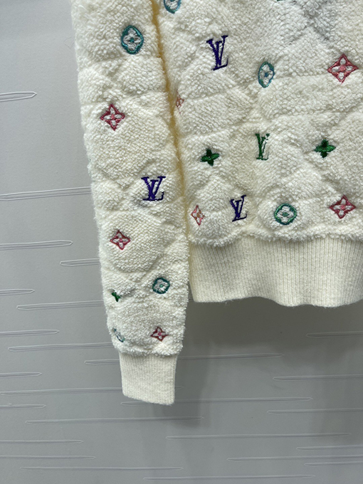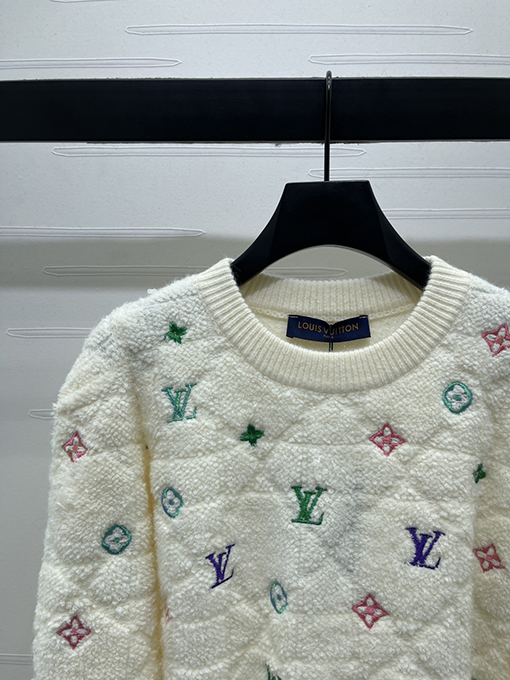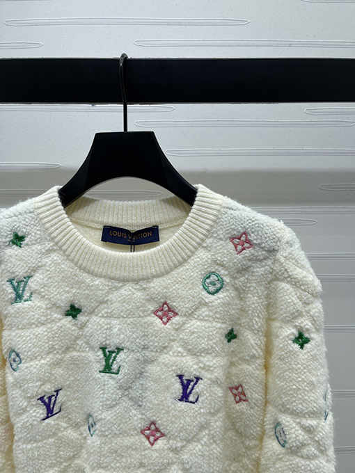 商品说明 | このクルーネックのプルオーバーセーターは、特注のウール糸を使用し、滑らかで繊細な肌触りを実現。軽さと暖かさを両立し、快適で洗練された着心地を提供します。全体にカラフルな四つ葉のクローバーのロゴとレタリングが巧みに配置され、ブランド独自の芸術的表現を表現し、生き生きとしたダイナミックな視覚効果を加えています。同系色のバインディングディテールがデザインに鮮やかなコントラストを生み出し、重ね着と洗練されたスタイルをさらに引き立てます。 |