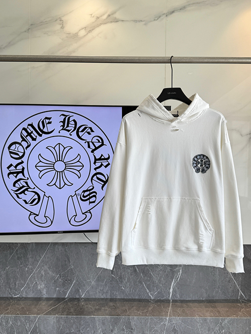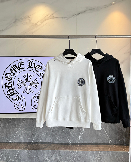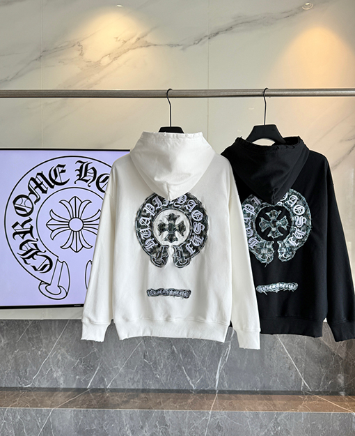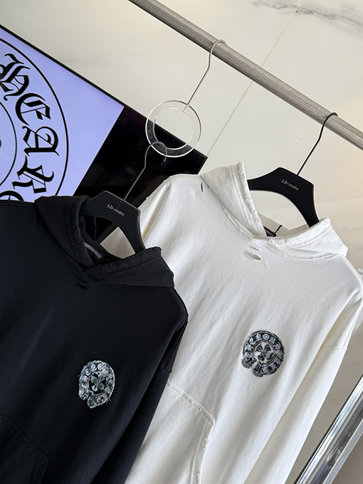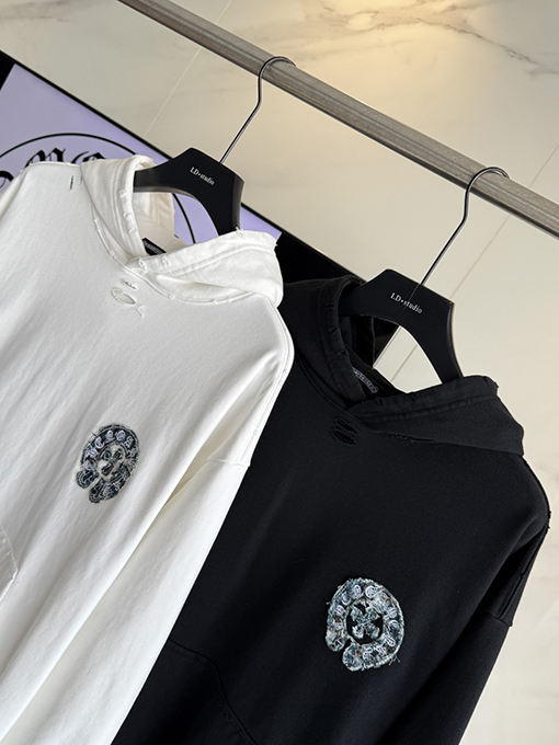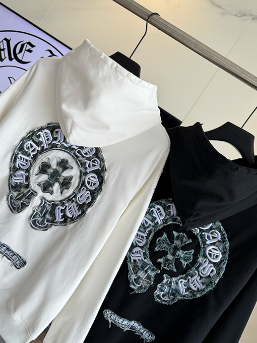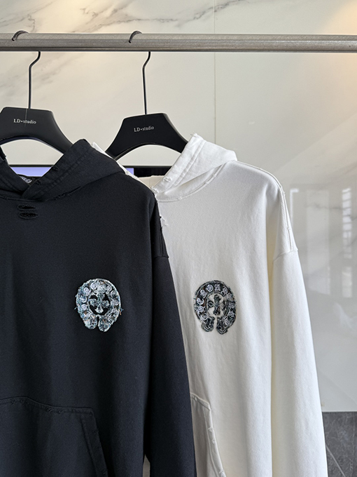 商品说明 | クロムハーツのアメリカンスタイルのアップリケが施された、カップル向けのフード付きスウェットシャツは、今シーズンのストリートウェアに欠かせないアイテムです。ブランドの特徴であるダークな美学と重厚な職人技を継承しながら、細部までこだわったディテールと上質な素材で、ハイストリートのラグジュアリーを再定義します。 |
