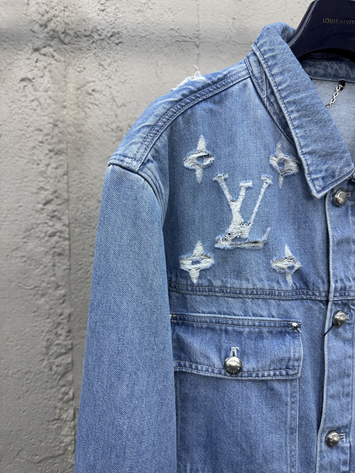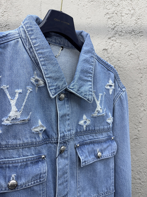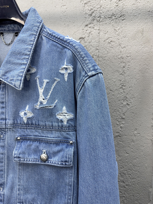 商品说明 | 洗練されたクラフトマンシップと大胆なデザインで、現代的なラグジュアリーデニムのファッション表現を再定義するこのルイヴィトンウォッシュレトロブレイキングデニムジャケット。特殊なウォッシュ処理と破壊工程を経て、レトロな摩耗の質感効果を生み出し、細部まで独特の風合いを醸し出し、自然で個性的なレトロな雰囲気を醸し出しています。 |