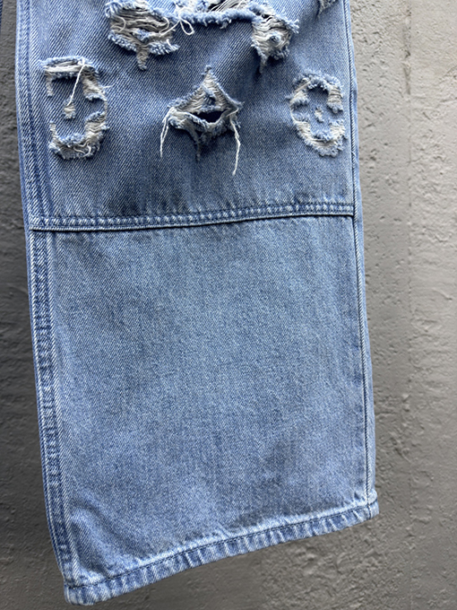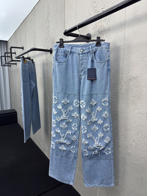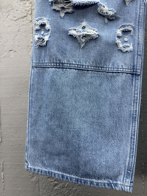 商品说明 | このルイ・ヴィトンのウォッシュ加工されたレトロな破壊されたモノグラムのロゴシリーズのストレートデニムパンツは、豪華さとストリートの雰囲気を完璧に融合させ、重い職人技と細部の質感で、今シーズンのファッションに欠かせない選択肢になっています。 |