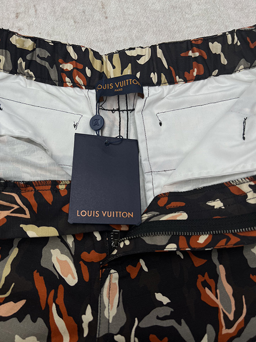 商品说明 | ルイ・ヴィトンと日本のファッションデザイナーNIGO®が、2025年春夏コレクションのキーアイテムとして再びコラボレーション。カモフラージュ柄のマルチポケットワークパンツが登場。実用的なワークウェアのシルエットとルイ・ヴィトンの上質なテーラリング技術を融合させ、ストリートシックなシルエットを独創的に表現しています。高密度の混紡素材を使用し、ハリと耐久性を兼ね備えたフィット感と、柔らかく肌触りの良い肌触りを実現。ワークパンツに求められる快適性と耐久性を両立しています。 |