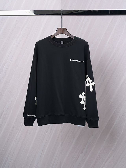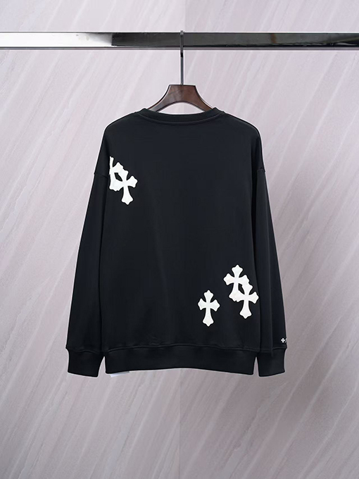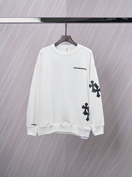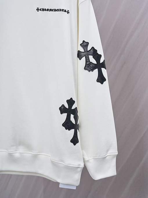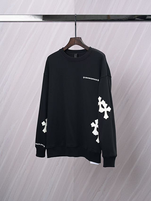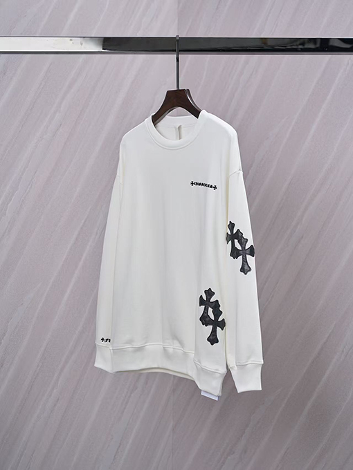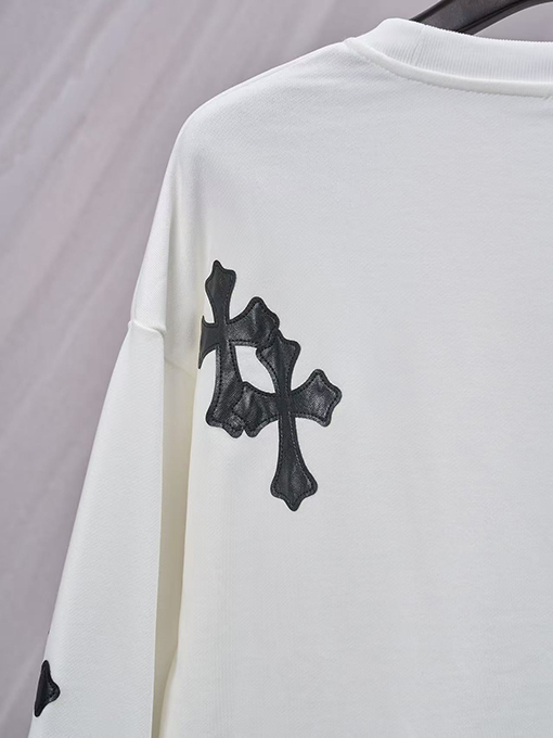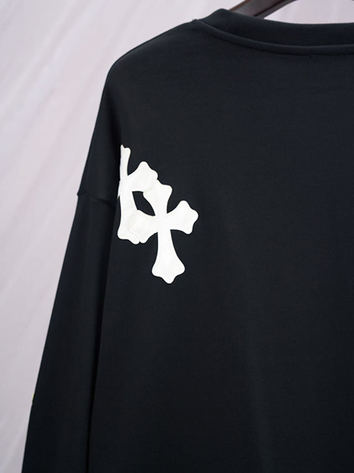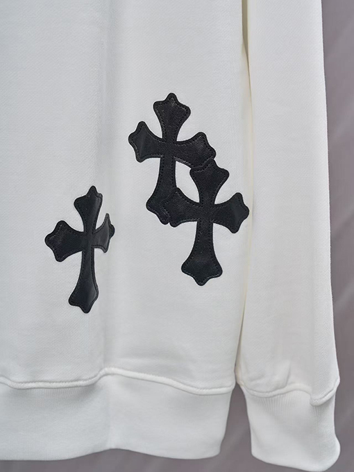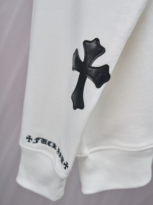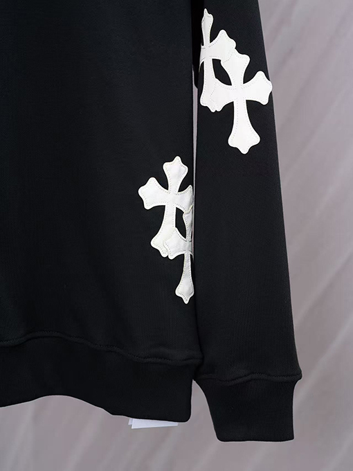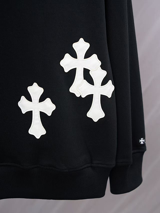 商品说明 | このクロムハーツ420 gのラウンドネックセーターは、ブランドの一貫したストリートの反逆と軽い贅沢の精神を継続し、サンスクリット語の刺繍されたアルファベットのロゴと革のマークの十字架の職人技をコアハイライトとして使用しています。全体的なデザインはシンプルでエレガントですが、ディテールを通して独特の個性を伝え、秋冬のワードローブに欠かせないトレンドアイテムと言えます。 |