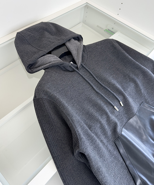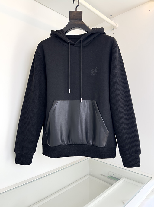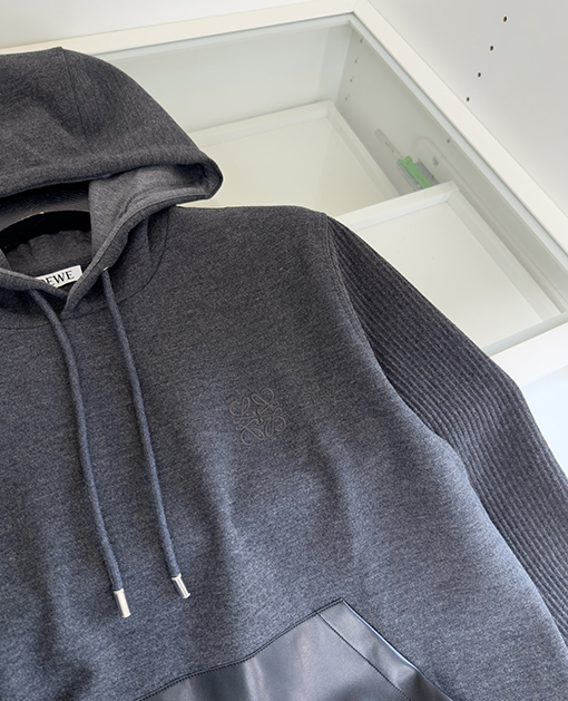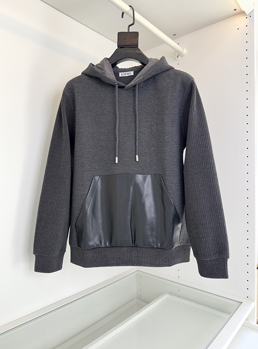 商品说明 | ロエベ2025年秋冬コレクションのウール混紡パッチワークプルオーバーニットスウェットシャツは、独特のステッチと繊細なディテールが際立ち、控えめなラグジュアリーとモダンなファッションを完璧に融合しています。レザーの胸ポケットが、控えめなルックスにさりげないモダンさと洗練された雰囲気を添えています。さらに、シグネチャーの刺繍ロゴは控えめながらも瞬時に認識でき、ロエベのユニークなブランドアイデンティティを際立たせています。 |