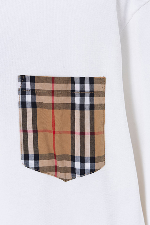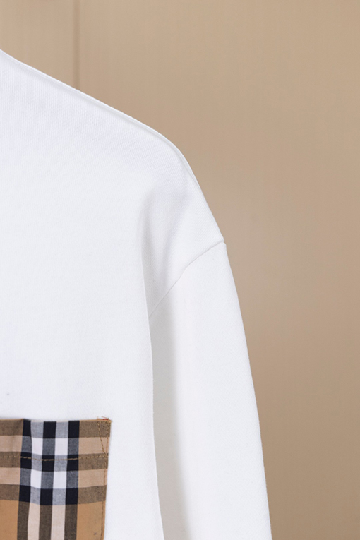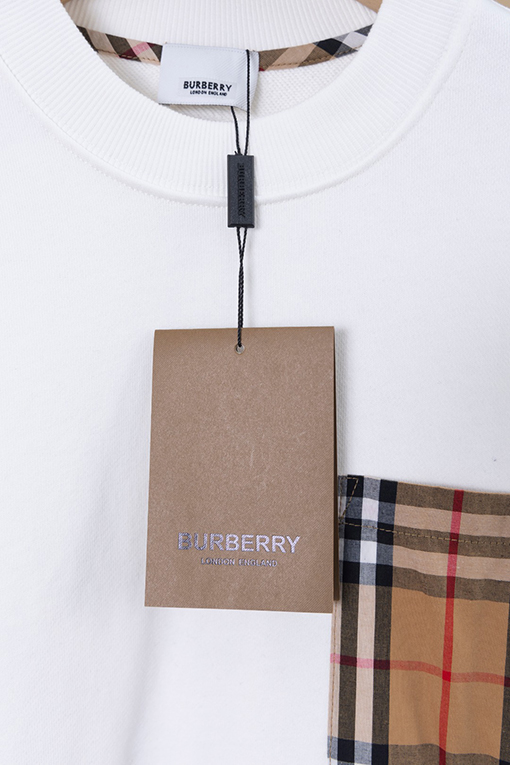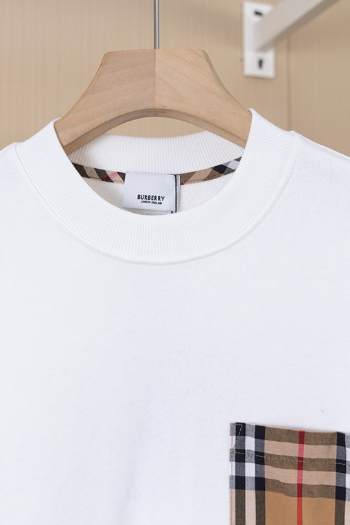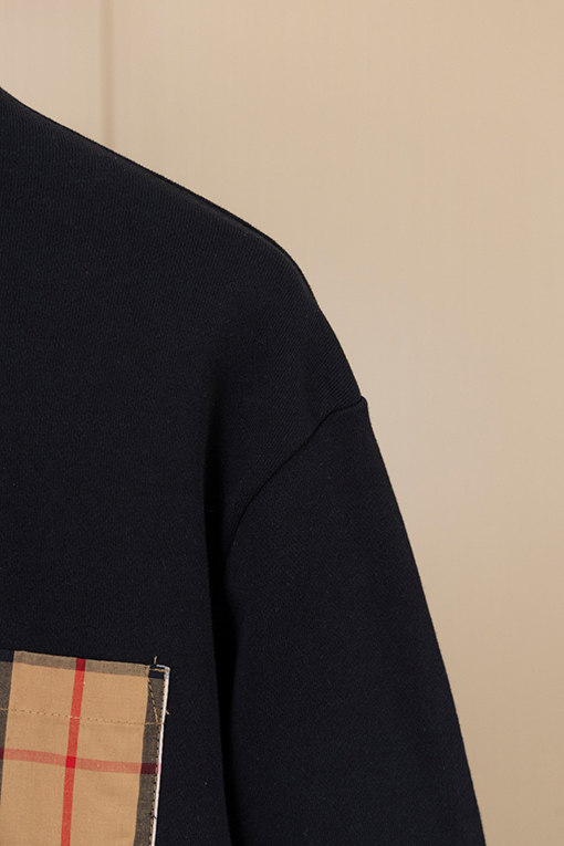 商品说明 | デザインのポイント:胸元にあしらわれたハンドカットのバーバリーチェックのパッチポケットは、精巧な作りで個性を際立たせています。背面のレザーロゴがシンプルで高級感を演出しています。全体のフォルムはシンプルながらも、細部までこだわったディテールが、クラシックでありながらファッショナブルな印象を与えます。