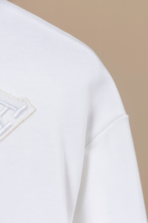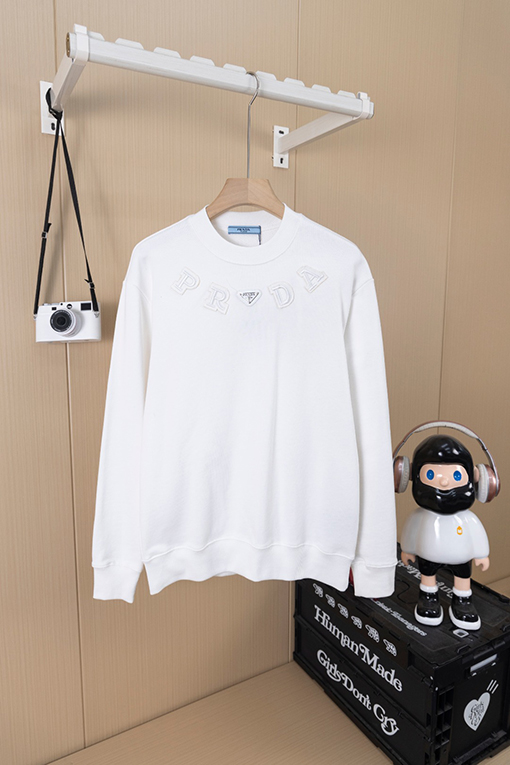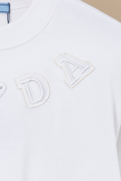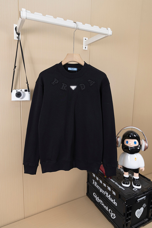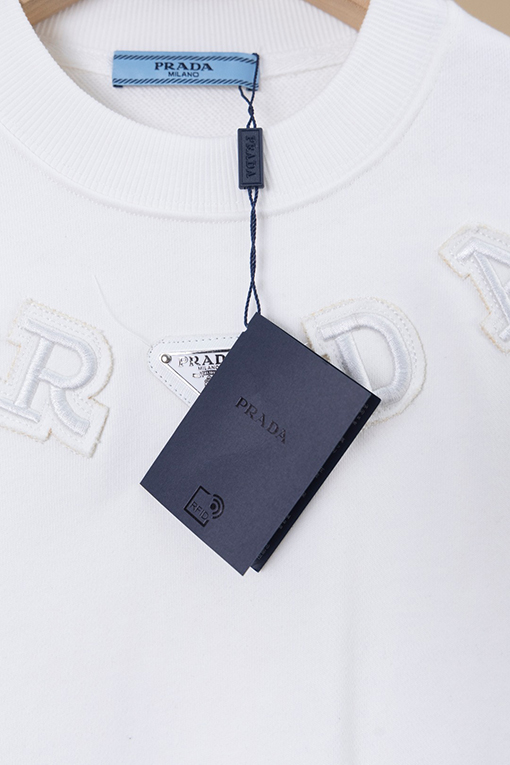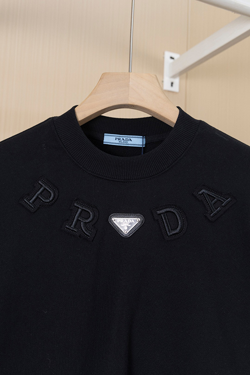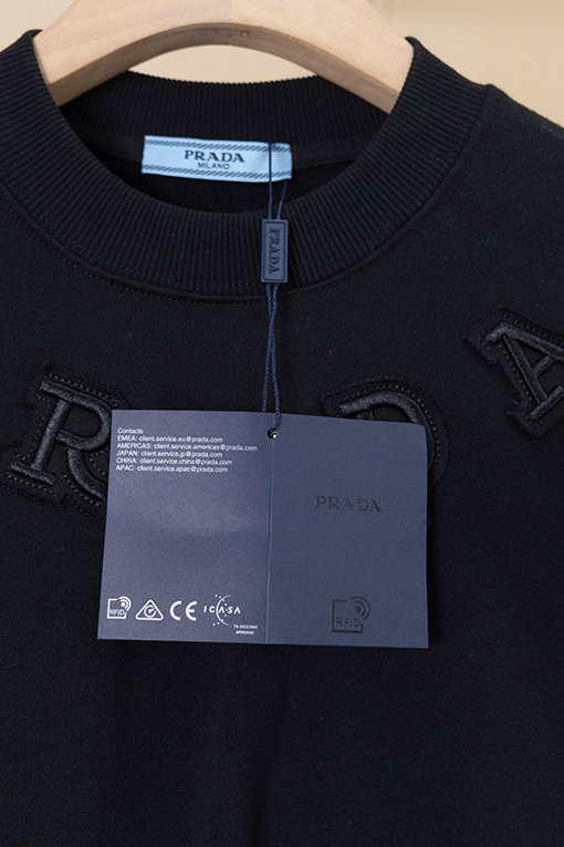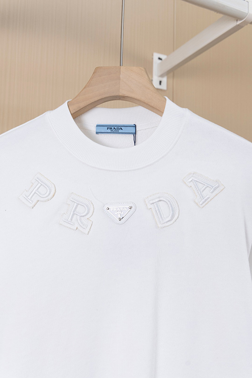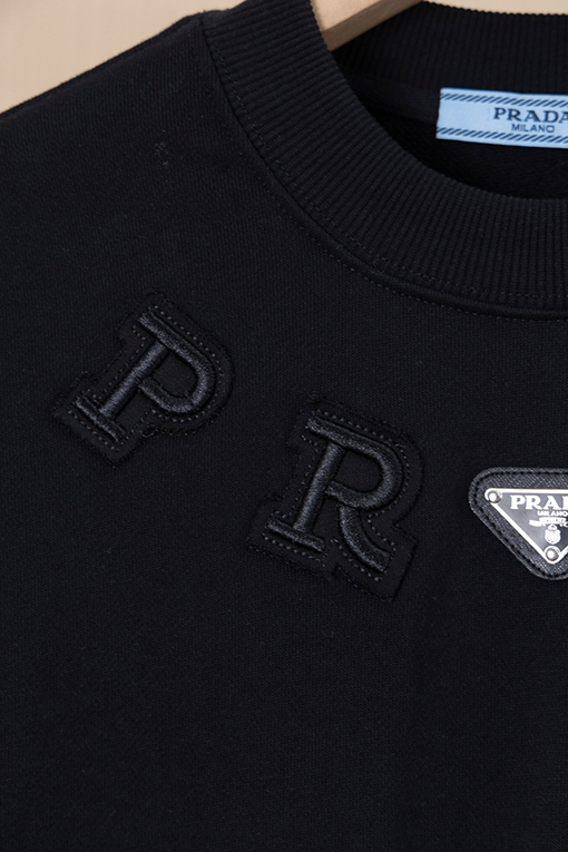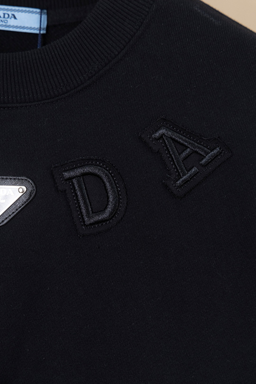 商品说明 | 糸の密度と同色染色の工程により、調和のとれた均一な色彩が確保され、ほつれや変形を防ぎ、全体的な品質と視覚的な一貫性を確保しています。胸元にはレーザーカットのアップリケ文字とクラシックなアイアンロゴが施され、重層的な視覚的インパクトを生み出しています。アップリケと刺繍の二重の職人技が、より立体的なデザイン言語を生み出し、プラダのミニマリズムとアヴァンギャルドなスタイルを完璧に表現しています。 |
