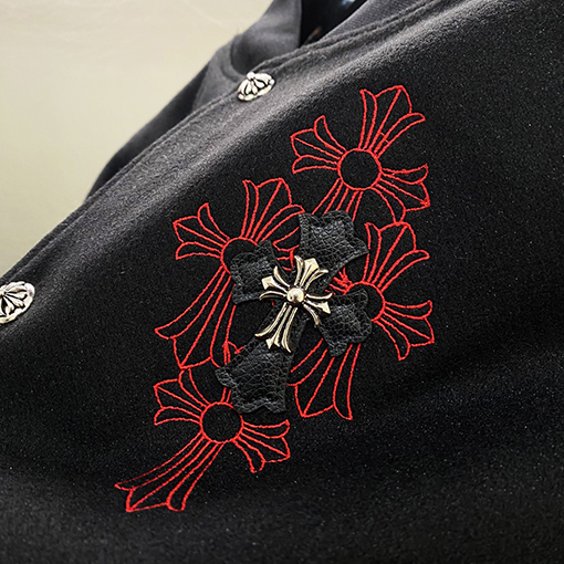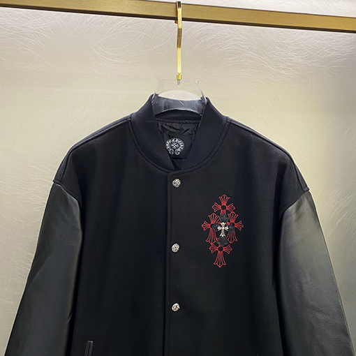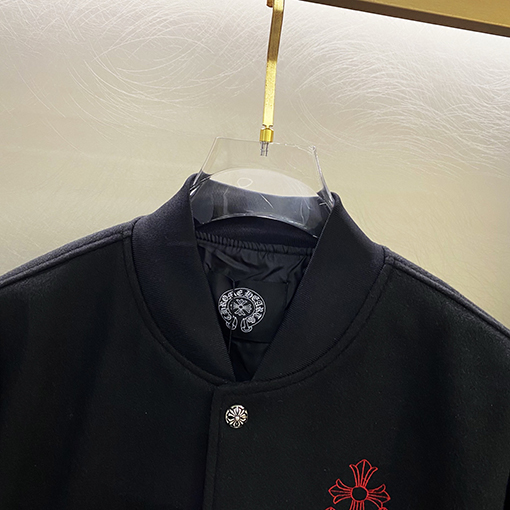 商品说明 | この新作のクロムハーツ ホースシュークロス ベースボールジャケットは、特徴的なダークな美学と精巧なディテールが特徴で、一目でそれと分かるトレンド感を醸し出します。ボディとディテールを彩る繊細なメタリックアクセントが、豊かで立体的な印象を与えます。シグネチャーのレッドラベルクロスが、ブランドのダークな美学をさらに引き立てます。控えめなエレガンスの中にシャープなエッジを効かせたこのジャケットは、クロムハーツならではの反骨精神とラグジュアリーな仕上がりを完璧に体現しています。 |