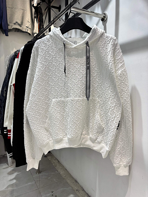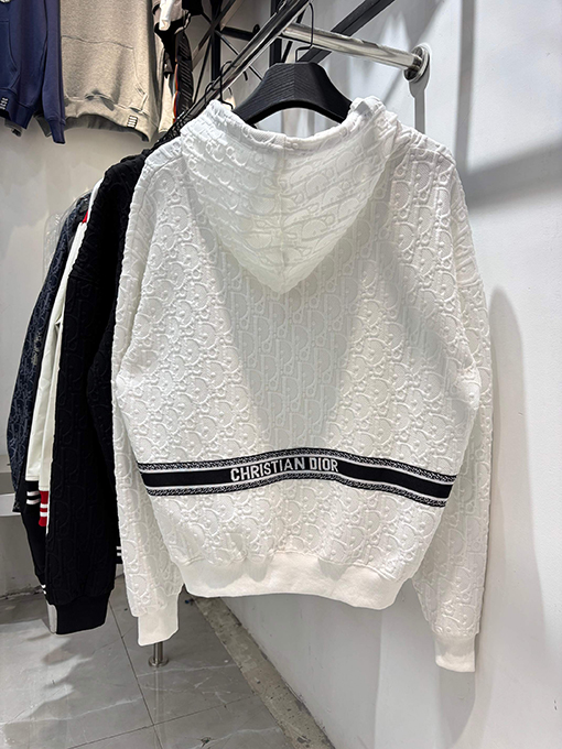 商品说明 | 今シーズンのディオールの最高傑作、クラシックな全面エンボス加工のカスタムジャカードフーデッドプルオーバースウェットシャツは、ラグジュアリーな職人技とアヴァンギャルドなトレンドを完璧に融合しています。特許取得済みの生地は、伝統的なジャカード織りの職人技の限界を打ち破り、究極の質感と卓越したデザインランゲージを体現しています。 |