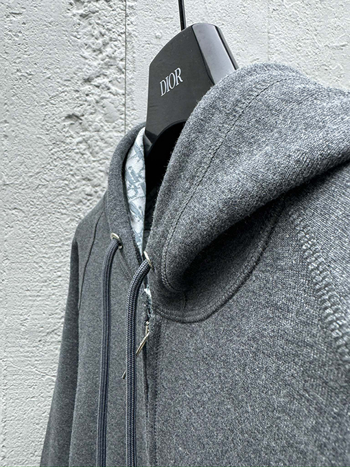 商品说明 | リバーシブルデザインで2つの異なるスタイルを楽しめるため、瞬時にスタイルチェンジが可能です。フロントはシンプルな無地とロゴディテールが、控えめながらも洗練された印象を与えます。反対側はクラシックなオブリークジャカードで装飾され、バックにはクリスチャン・ディオールを象徴するストライプ柄があしらわれ、個性的でスタイリッシュな印象に仕上がっています。フード付きデザインとフロントジッパー開閉は、実用性とシックで都会的な雰囲気を兼ね備えています。 |