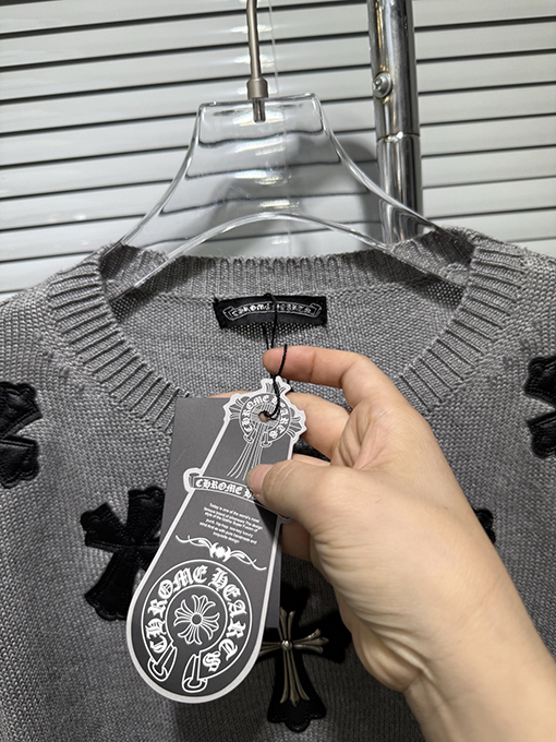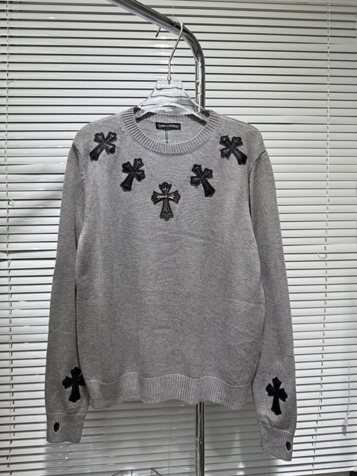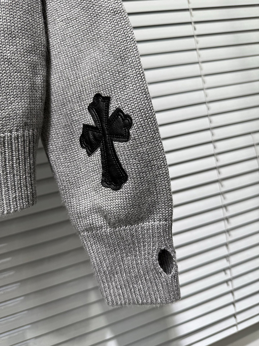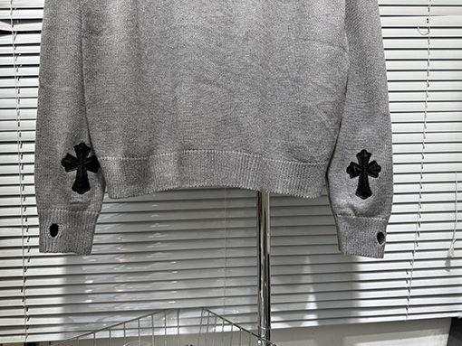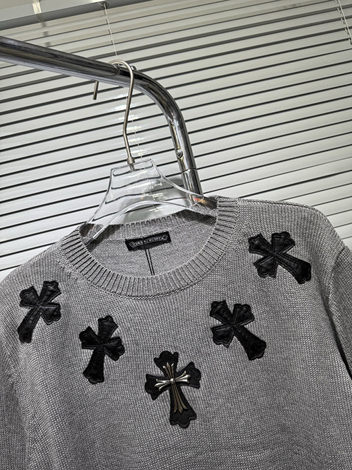 商品说明 | 輸入シルケット加工コットン糸を機械織りで丁寧に織り上げた生地は、滑らかで柔らかく、肌に優しく、自然な光沢と控えめな高級感を醸し出します。シルケット加工により、セーターはドレープ性と耐久性を高め、シャープなシルエットを保ちながら、快適で通気性に優れた着心地を実現しています。1万ステッチの刺繍とレザーアップリケ刺繍を組み合わせた仕上げで、精緻なステッチワークが生み出す、立体的で深みのある刺繍は、レザー刺繍の重厚な質感と相まって、クロムハーツならではのハードコアなスタイルと細部へのこだわりを完璧に表現しています。 |