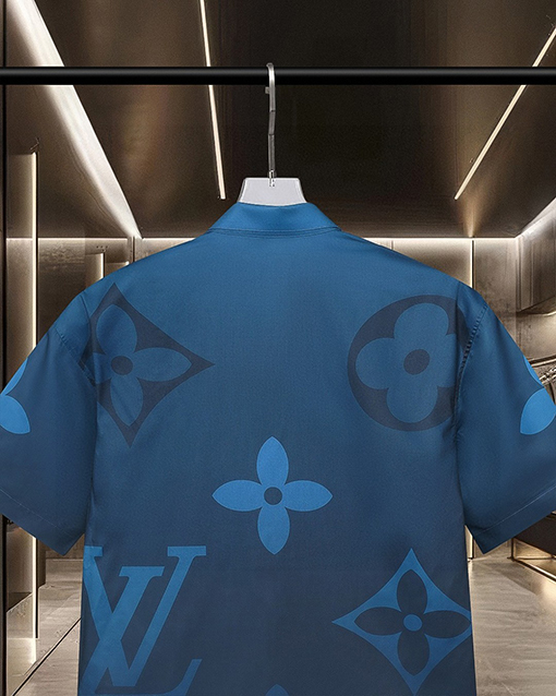 商品说明 | ルイ・ヴィトンの2025年春夏コレクションが、再びファッション界を熱狂の渦に巻き込んでいます。グラデーションのモノグラムブルーのデジタルプリントを施したこの半袖シャツは、ブランドのクラシックな要素を斬新に解釈しています。全体のデザインはブルーのグラデーション効果と、アイコニックなルイヴィトンモノグラムパターンが融合し、豊かで芸術的な効果を生み出しています。