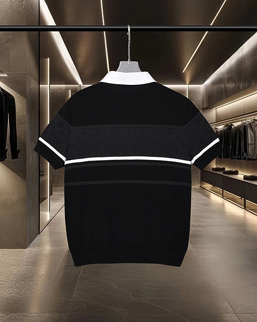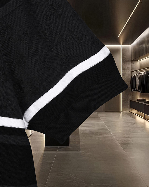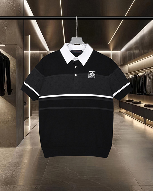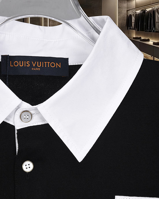 商品说明 | ルイ・ヴィトンの2025年春夏の新たな傑作、コントラストの効いたカラーブロックロゴジャカードニットラペル半袖シャツは、ブランドのアバンギャルドな遺伝子をクラシックなポロのシルエットに注入し、紳士的なスタイルとファッショナブルな雰囲気を融合させています。 |
