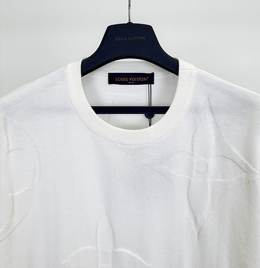 商品说明 | 全体に施されたジャカード織りのデザインは、クラシックなルイヴィトンロゴと幾何学的なテクスチャーを巧みに組み合わせ、控えめながらもブランドアイデンティティを際立たせています。ミニマルで無駄のないラウンドネックラインは、ネックラインを美しく整えます。袖口と裾は補強されたエッジで、強度と耐久性を高めています。細部までこだわった職人技が、着用するたびに完璧なフィット感を保証します。 |