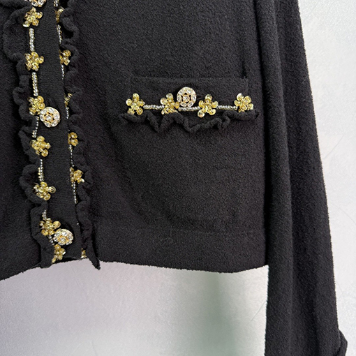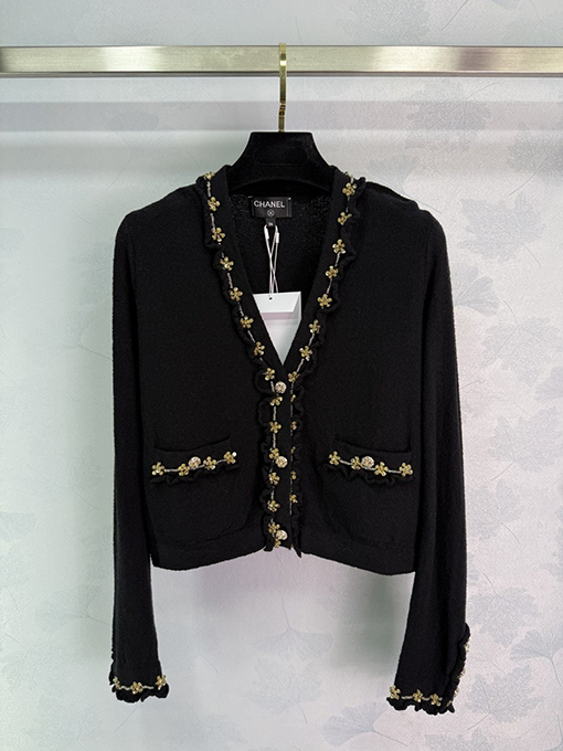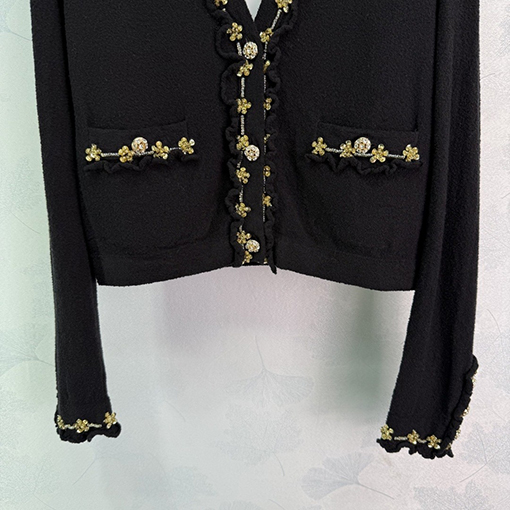 商品说明 | シャネル2025年初秋コレクションのビーズをあしらったフローラル柄ニットカーディガンは、精緻な職人技と贅沢な素材使いで、ブランドのハイファッションDNAを完璧に体現しています。特注のシルクウール糸で織り上げられたこのカーディガンは、高密度のステッチ、柔らかく滑らかな肌触り、そして独特のウールの風合いが特徴です。快適な着心地と軽やかさを兼ね備え、それでいて温かさも兼ね備えています。 |