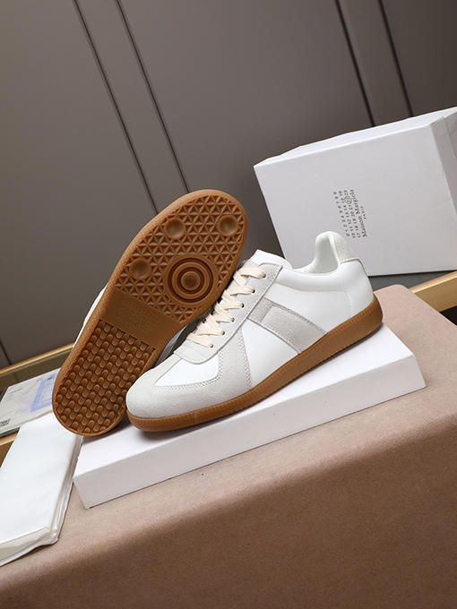 商品说明 | アッパーは厳選されたナッパカーフスキンとシルケット加工を施した牛スエードを使用し、繊細で重層的な質感を持つ独特の「ディアスキン」テクスチャーを生み出しています。ライニングは特注の本牛革とショートパイル生地を使用し、優れた吸湿性と通気性を実現し、常に快適で爽やかな履き心地を提供します。インソールはプレミアムな水染めシープスキンを使用し、高周波エンボスロゴをあしらうことで、洗練された洗練された外観とプレミアムな美的感覚を醸し出しています。