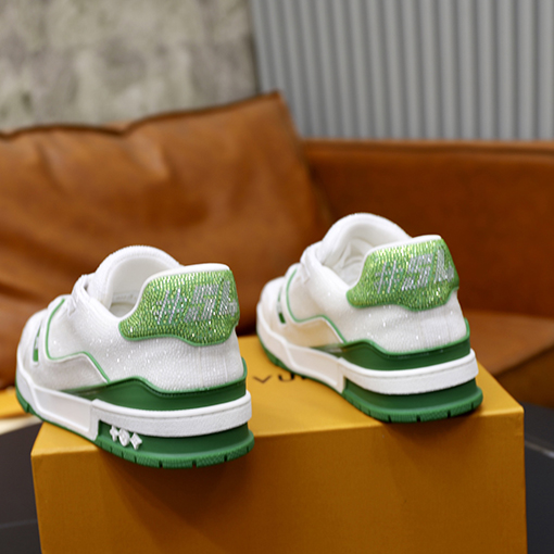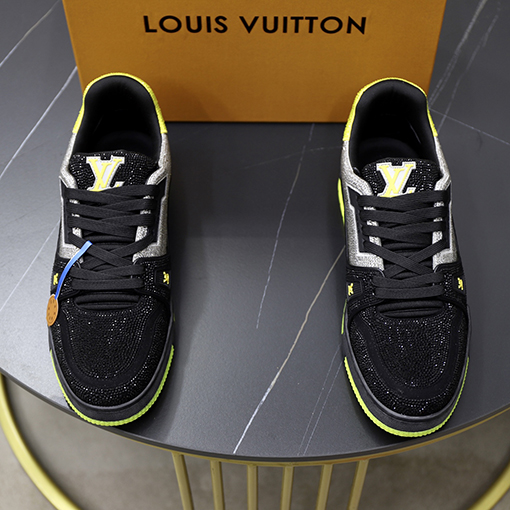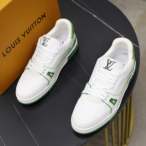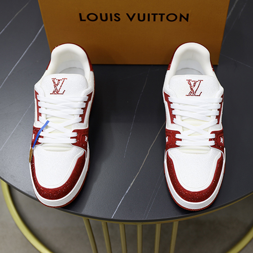 商品说明 | シューズ本体には光沢のあるクリスタルがちりばめられ、まばゆい光を反射し、ゴージャスで個性的な視覚効果を生み出します。クラシックなホワイトにダイヤモンド柄、鮮やかなレッドにダイヤモンド柄の2色展開で、それぞれが独特の魅力を放ちます。ホワイトは爽やかでエレガント、レッドは大胆で情熱的なカラーで、カップルの多様なニーズを満たします。タンにはダイヤモンドステッチのルイヴィトンモノグラムエンブレムがちりばめられ、エレガントで高級感を添えています。 |