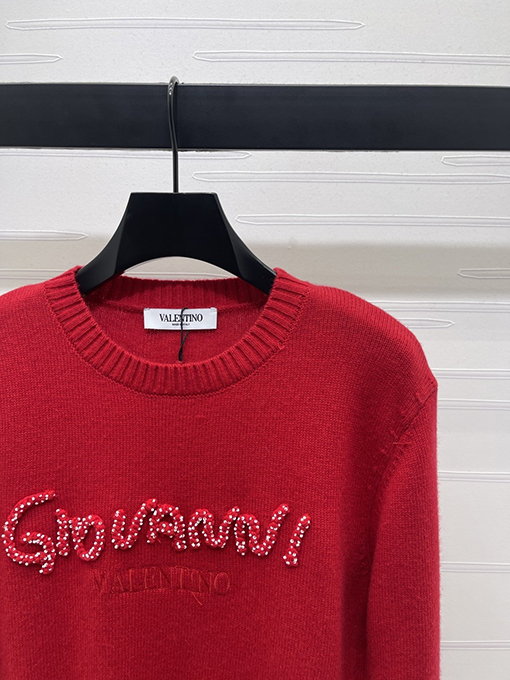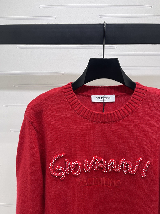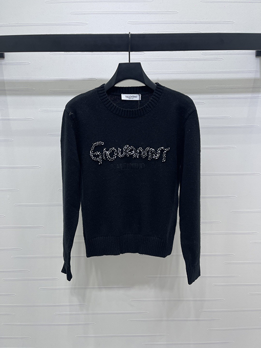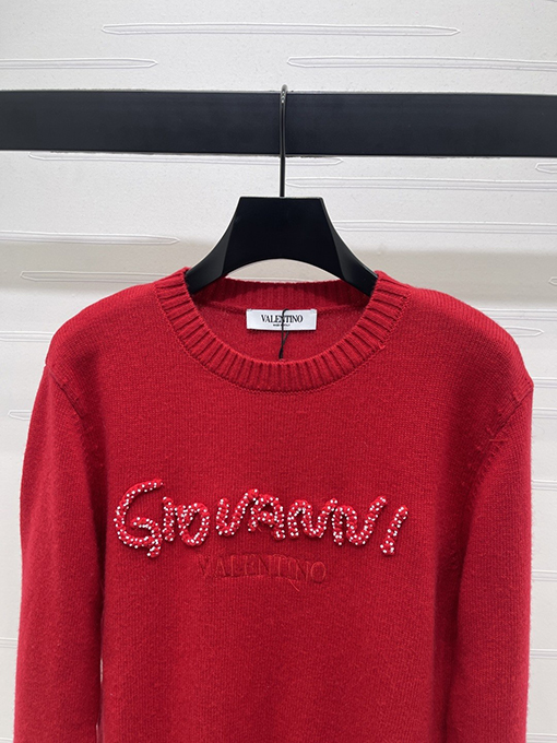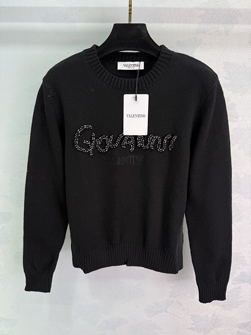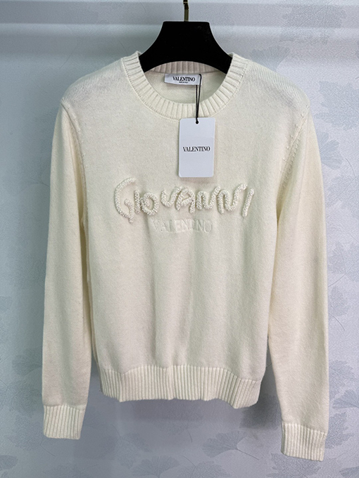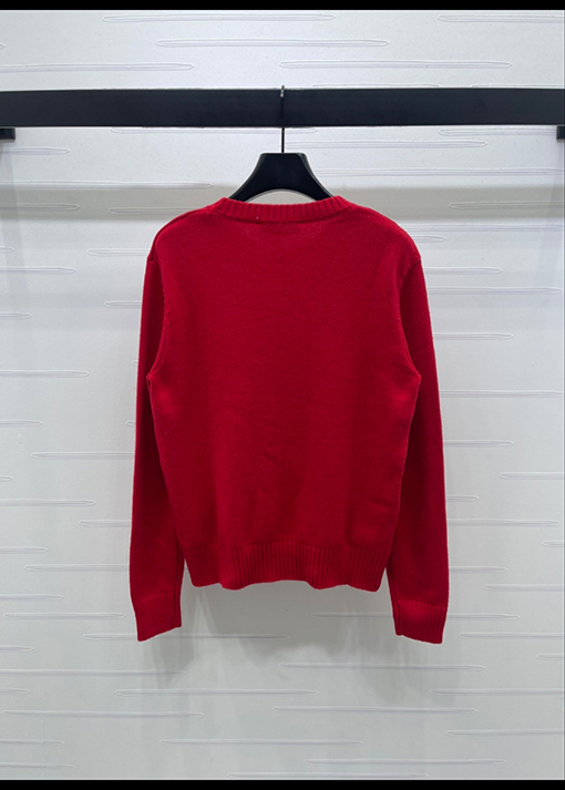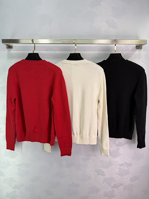 商品说明 | シンプルでエレガントなラウンドネックと長袖のデザインはそのままに、ネックライン、袖口、裾には幅広のリブを施し、調和のとれた統一感のあるルックスを実現しています。胸元にはビーズをあしらった立体的なクロシェロゴをあしらい、印象的な立体感を演出。視線を惹きつけるだけでなく、全体に冬らしい雪景色のような独特の雰囲気を醸し出しています。ブランドの象徴とも言えるこのロゴは、オートクチュールとファッショナブルな雰囲気を際立たせています。 |