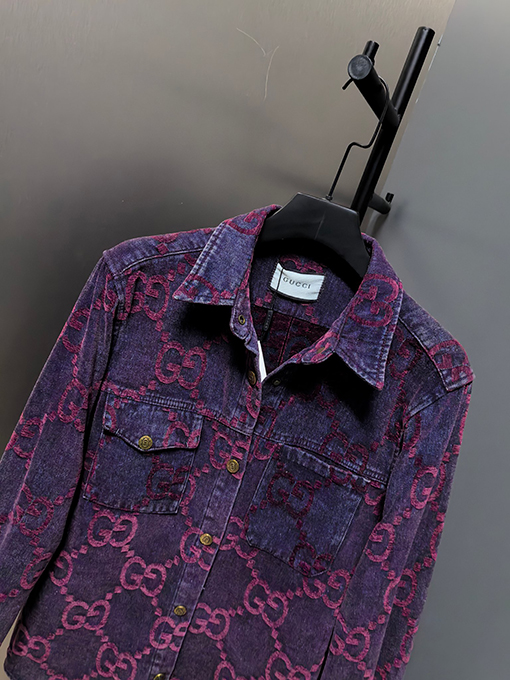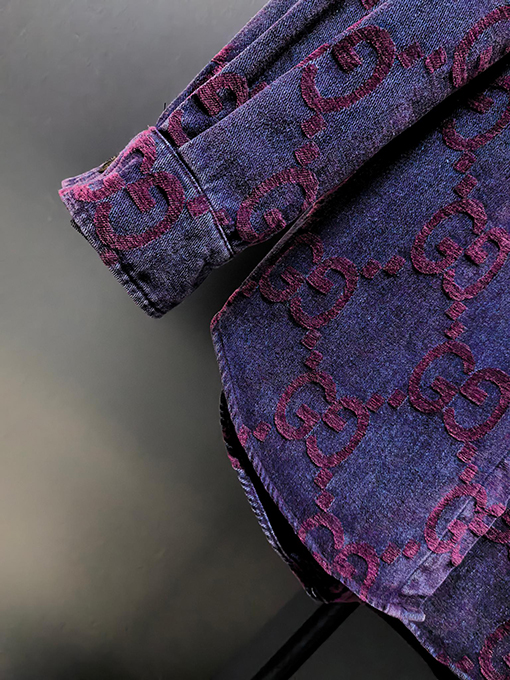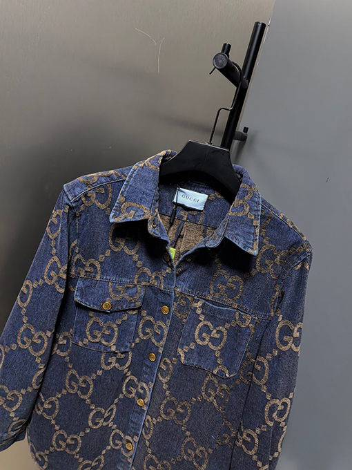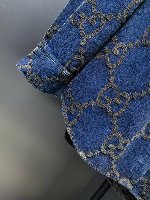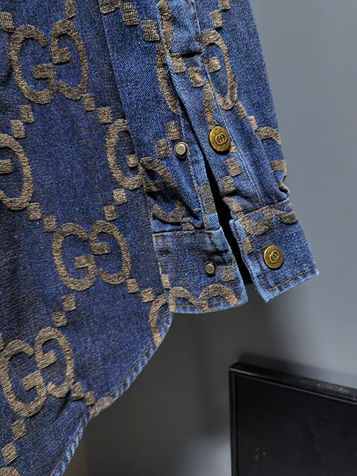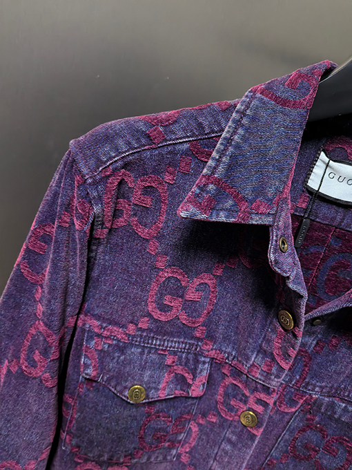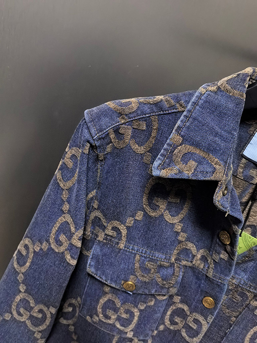 商品说明 | グッチの2024年新作カップルデニムジャケットは、ウォッシュ加工とダメージ加工を施したコンポジットデニムジャカード生地を採用し、個性的でトレンド感のあるルックスを演出しています。職人技が光るこの生地は、自然な色合いとハリのある風合いが特徴です。ウォッシュ加工とダメージ加工により、デニム本来のラギッドな風合いを保ちつつ、よりカジュアルでファッショナブルな雰囲気を醸し出しています。