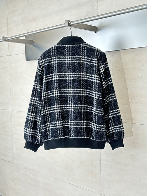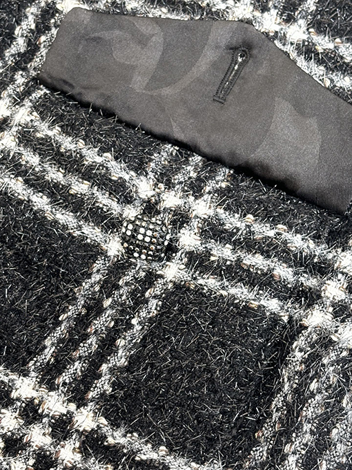 商品说明 | シャネルは常にエレガンスと最高級のクラフツマンシップの代名詞であり続けています。このシングルブレストのウールチェックジャケットは、伝統的な職人技と現代的な美学を融合させ、控えめながらも洗練されたスタイルを体現しています。生地には、きらめくチェック柄をあしらった特注の梳毛ウールを使用し、光と影の下で繊細な光沢を放ち、ハリと柔らかさを兼ね備えた上質な質感を生み出しています。 |