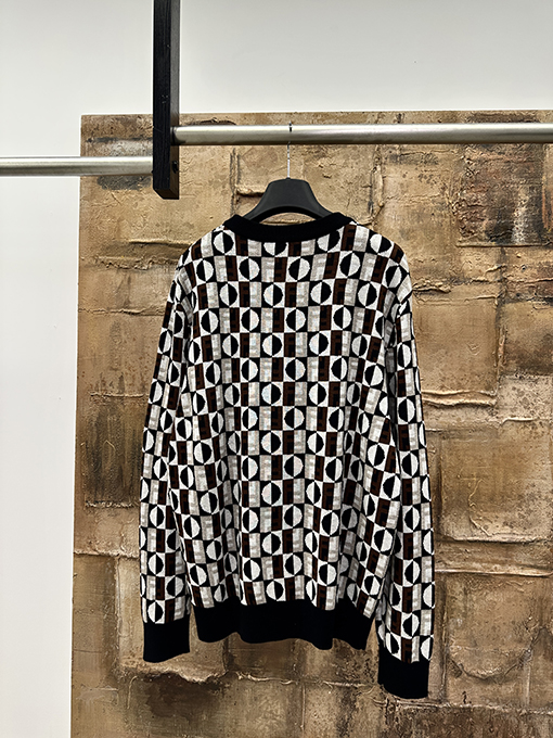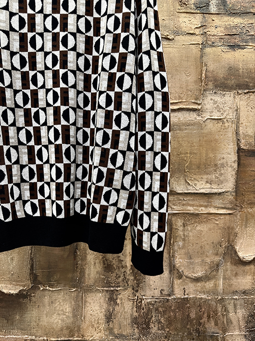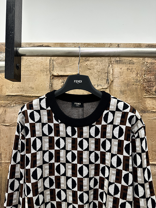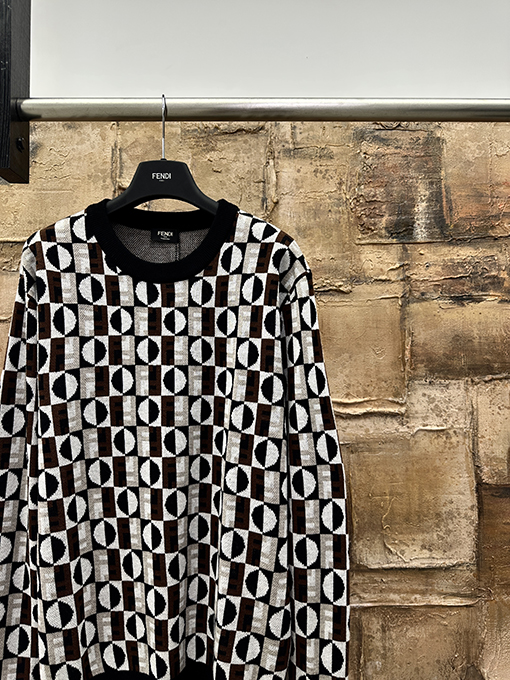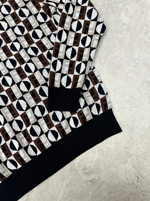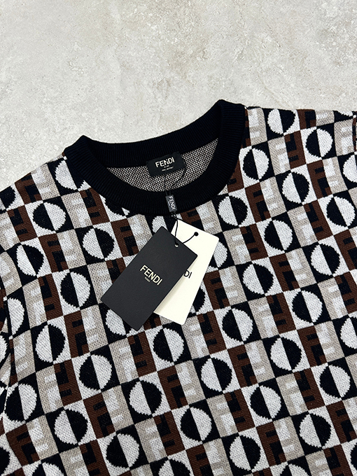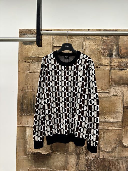 商品说明 | フェンディが今シーズン発表した新作ジャカードクルーネックセーターは、イタリアンエレガンスとモダンなシンプルさを完璧に融合し、ブランドを象徴する高級感を体現しています。精密なジャカード織り技法を用いて仕立てられたこのセーターは、ブランドを象徴する要素を生地に織り込み、立体的で重層的な視覚効果を生み出しています。プリントデザインと比較すると、ジャカードセーターはより洗練された洗練された雰囲気を醸し出し、控えめなラグジュアリーを演出します。 |