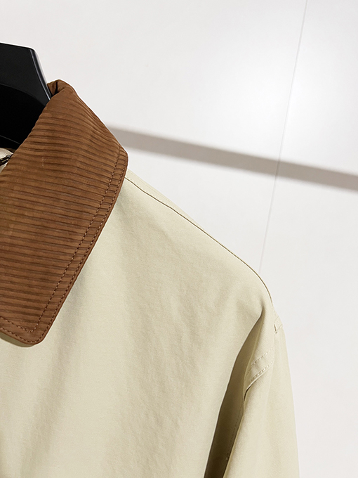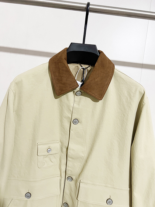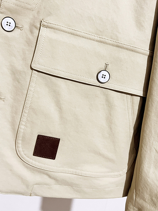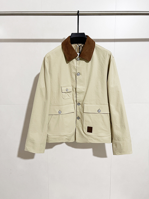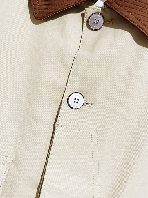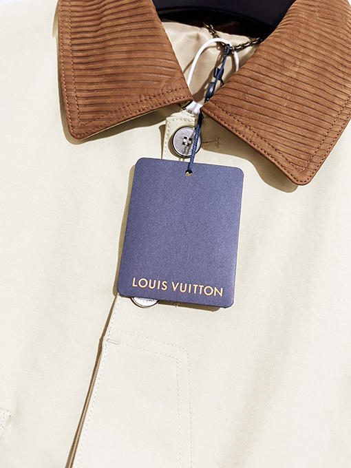 商品说明 | ルイ・ヴィトンのウェブサイトで新たに発表された、牛革のラペルを配したオールコットン織りのマルチポケットワークジャケット。贅沢な素材と実用的なデザインが見事に融合し、高級感とストリートスタイルを融合させたトレンド感あふれる一着です。ZP特注染めのオールコットン織り生地を使用し、ハリのあるスタイリッシュな風合い、上質な手触り、通気性、快適性、そして型崩れしにくい耐久性を兼ね備えています。 |