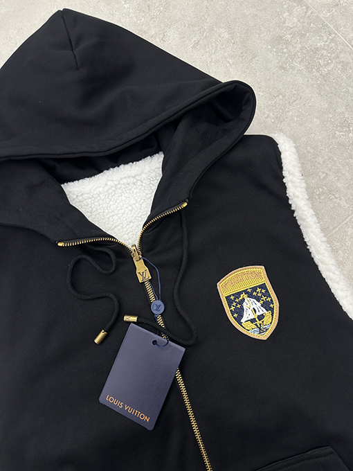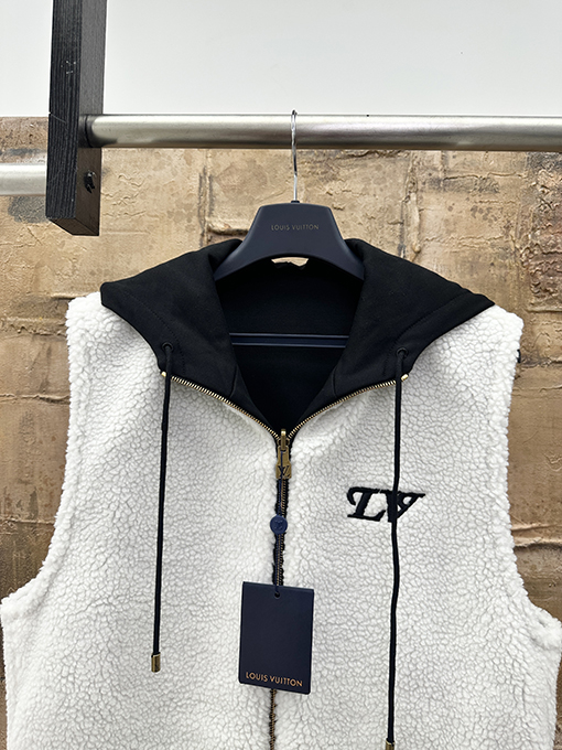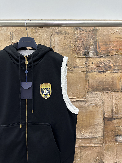 商品说明 | すっきりとしたシルエットにフードがアクセントとなり、都会的なカジュアルルックを完璧に引き立てます。このベストは、特注の高級ファブリックを使用し、滑らかで快適な着心地を実現。保温性と通気性を兼ね備えています。リバーシブルデザインで2way使用が可能で、スタイルに合わせて簡単に切り替えられます。外側はルイヴィトンのクラシックな要素で装飾され、控えめながらもラグジュアリーな雰囲気を醸し出しています。内側はミニマルなデザインで、汎用性を高めています。 |