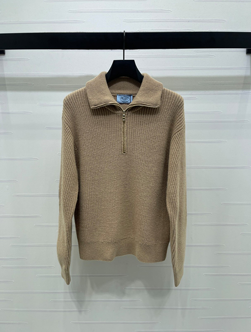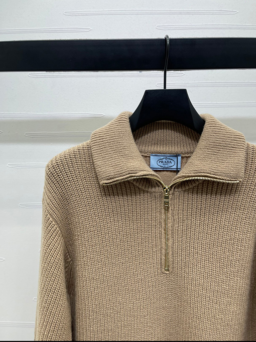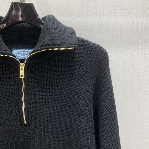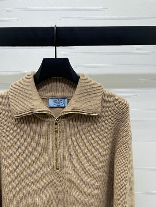 | 商品说明 | プラダは、2025年初秋コレクションの新作を発表。シンプルさとスタイリッシュさを体現した、ジッパー付きのラペルニットの長袖セーターが登場。特注のウール混紡糸を使用し、繊細なステッチと丁寧な織りで仕立てられたこのセーターは、ウール特有の柔らかな風合いと肌触りの良さを実現しています。ドロップショルダーがリラックスした印象を演出し、控えめながらも洗練されたシックさを漂わせる、リラックスしたエフォートレスなルックを演出します。