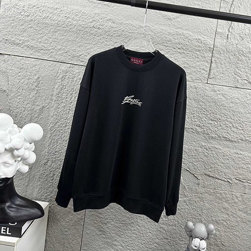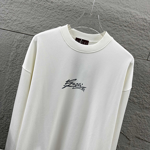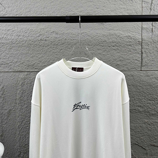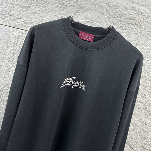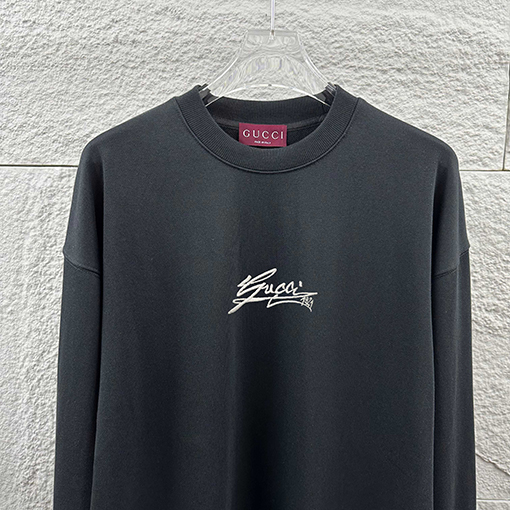 商品说明 | このクルーネックスウェットシャツは、胸元にブラックとホワイトのダブルG刺繍が施されています。クラシックなスタイルとモダンなスタイルを完璧に融合し、ブランドが一貫して持つモダンなセンスを体現しています。ブラックとホワイトのダブルGロゴとグッチのモノグラム刺繍が、ミニマルなクラフツマンシップを駆使し、洗練された流麗なラインを描き出しています。控えめながらも存在感のあるルックを演出します。