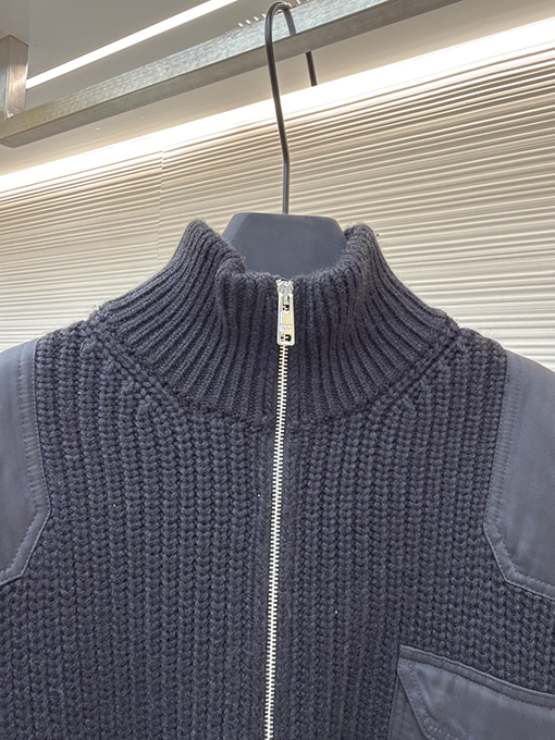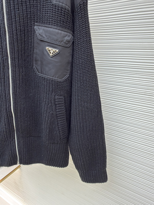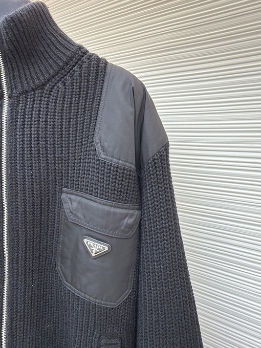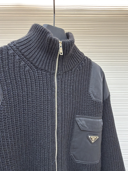 商品说明 | シンプルさとエレガンスで知られるプラダ。このトライアングルニットのセータージャケットは、まさにそのクラシックなスタイルを体現しています。胸元には、プラダを象徴するエナメル加工のトライアングルメタルロゴがあしらわれています。精密なカッティングにより、ロゴは正確かつしっかりと配置され、ブランドのエレガンスと洗練さを控えめに表現しています。滑らかなジッパー開閉は、ジャケットの洗練された美しさに実用性と活力を与えています。 |