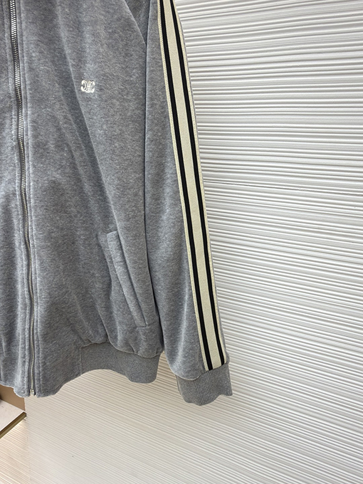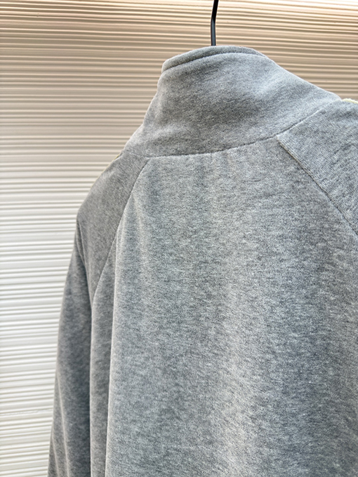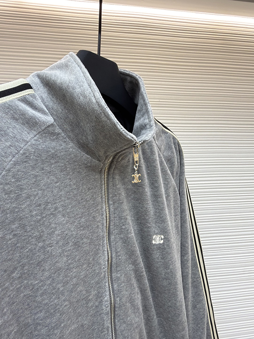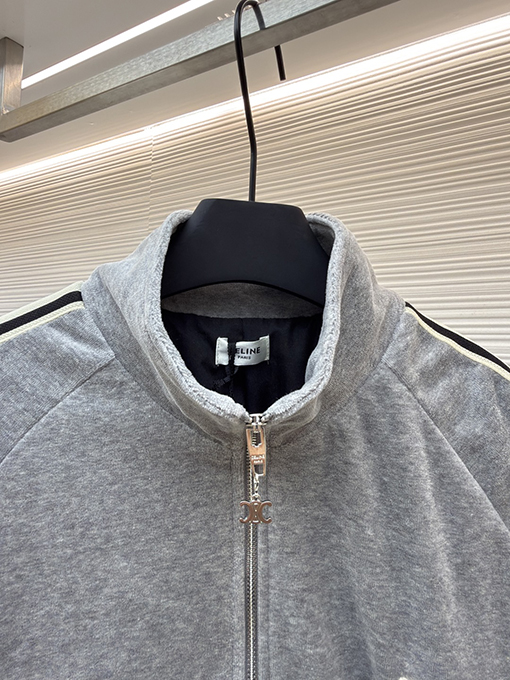商品说明 | セリーヌは、ミニマルな美学でオートクチュールを体現し、再びその真髄を体現しました。凱旋門の刺繍が施されたこの長袖ジャケットは、「控えめな力強さ」の真髄を完璧に捉えています。雲のように柔らかなツインスエードとミスティーコットンサテンを織り交ぜた特注生地は、まるで雲が優しく肌を撫でているかのような、繊細で滑らかな着心地です。上半身は自然な柔らかさときらめきのある質感で、ラグジュアリーなミスティーグレーの色合いを醸し出し、セリーヌを象徴するミニマルなエレガンスと落ち着いた雰囲気を完璧に引き立てています。