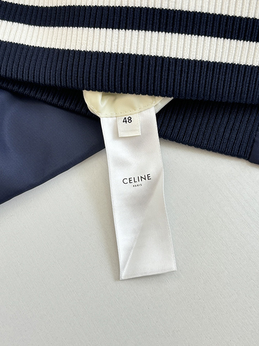 商品说明 | セリーヌは、そのシグネチャーであるフレンチミニマリストスタイルに若々しくモダンなタッチを融合させ、2025年春夏コレクションに向けて、ヴァーシティスタイルにインスパイアされた新作ベースボールジャケットを発表します。フロントとバックにはセリーヌ独自の刺繍技術が用いられ、ブランドロゴとアカデミックモチーフが精巧な刺繍で表現されています。鮮やかで立体的なディテールは、ブランドの比類なきクラフトマンシップへのこだわりを体現しています。 |