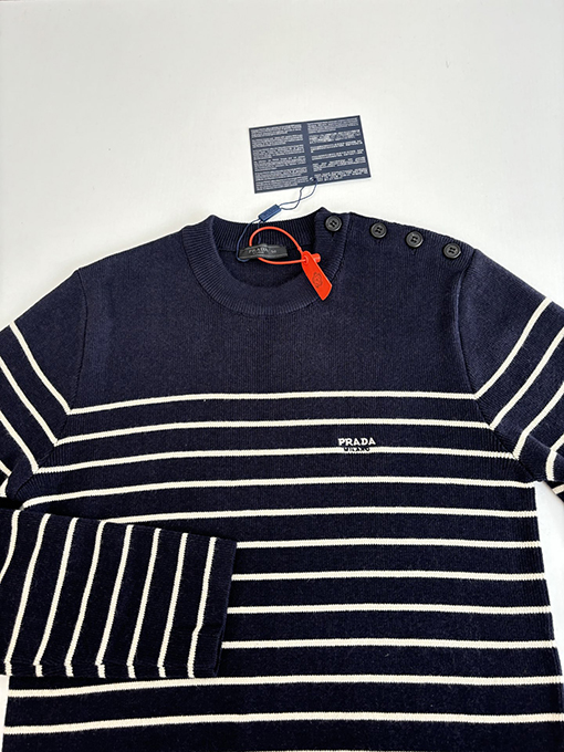 商品说明 | ミニマルラグジュアリーを基調としたプラダの2025年秋冬コレクション、ストライプ刺繍入りのボタンダウンサイドベンツセーターは、ブランドのプレミアムニットウェアへのこだわりを再確認させます。カスタム織りのシルケットウール混紡素材を使用したこのセーターは、柔らかくシルクのような質感と快適な肌触りを誇り、保温性と通気性を兼ね備え、秋冬のデイリーウェアとして最適です。 |