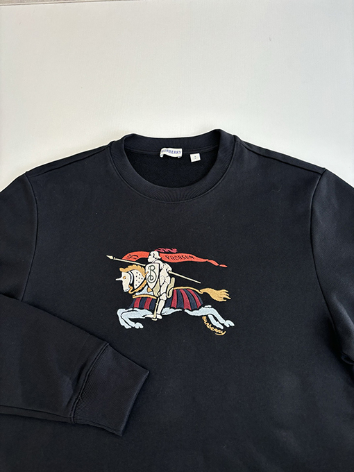 商品说明 | バーバリーの2025年春夏コレクションは、ブランドの100年の歴史を持つシンボルである馬の刺繍が施されたカラフルなクルーネックスウェットシャツが特徴です。ブランド特有の高級感を保ちつつ、精緻な職人技と細部へのこだわりを通して、バーバリーの控えめなラグジュアリーを表現しています。
