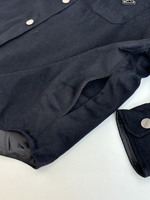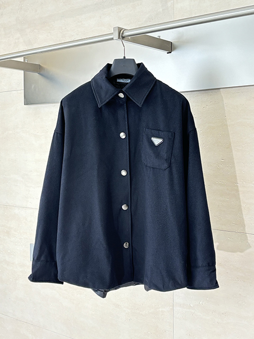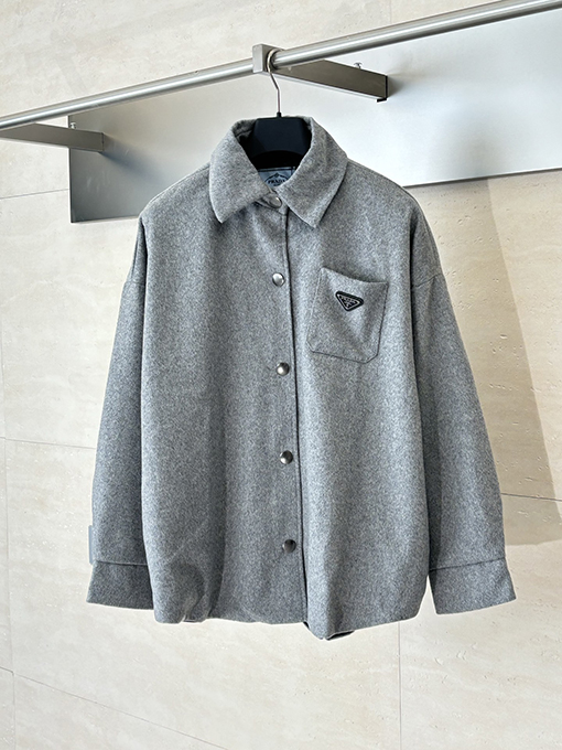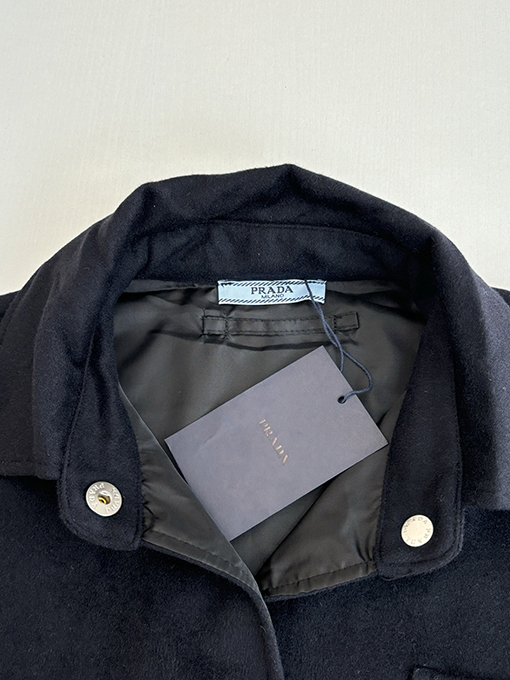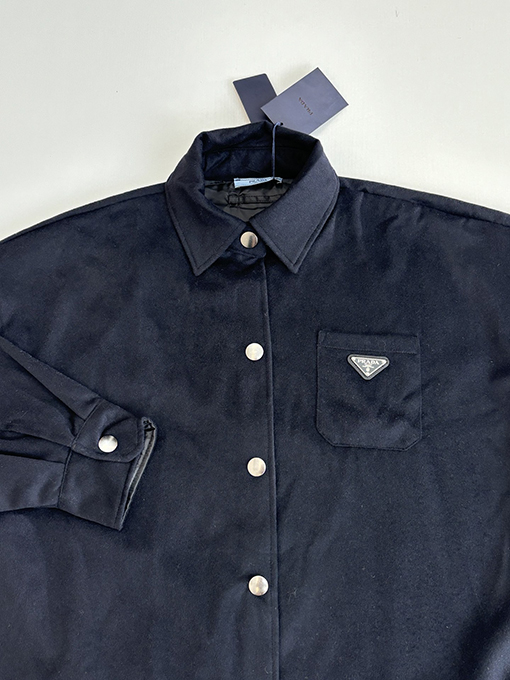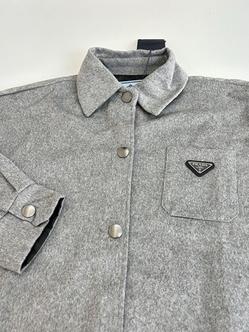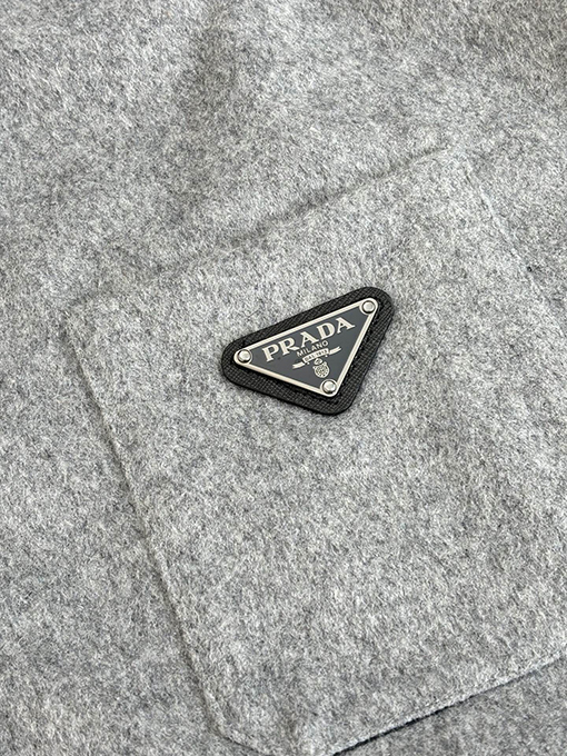 商品说明 | プラダはミニマルで精緻なクラフツマンシップで知られています。この2022年秋冬コレクションのカシミアトライアングルロゴシャツジャケットは、ブランドの哲学である「控えめなラグジュアリー」を完璧に体現しています。胸元には象徴的なエナメルトライアングルロゴがあしらわれ、レザーソールにはステンレススチール製の電気メッキレタリングが象嵌されています。控えめながらも存在感のあるこれらのディテールは、ブランドの象徴的なデザイン言語を体現しています。 |