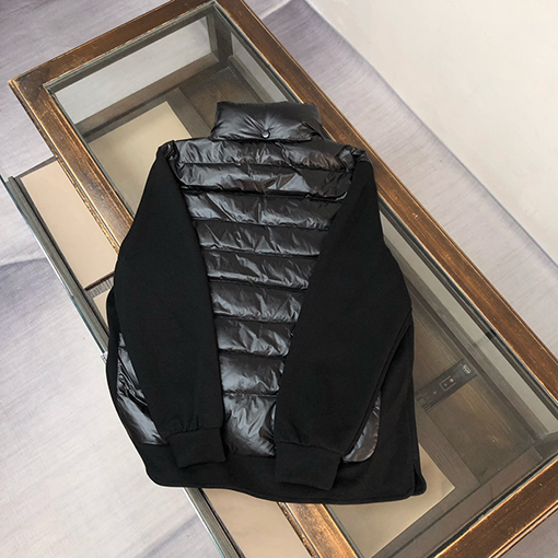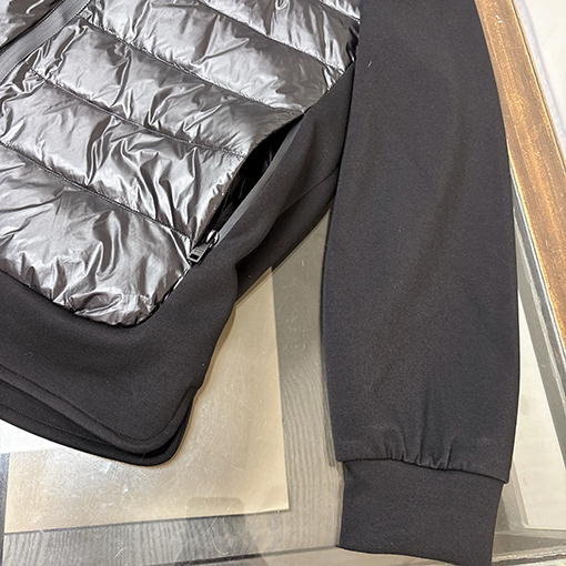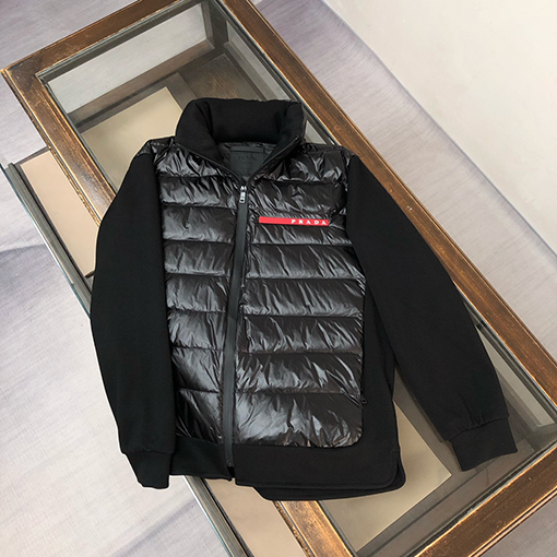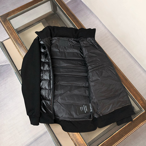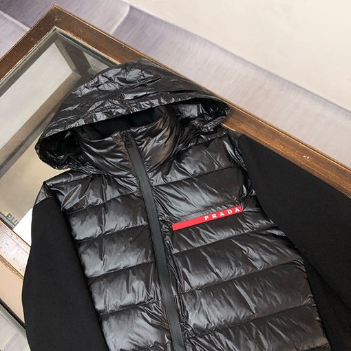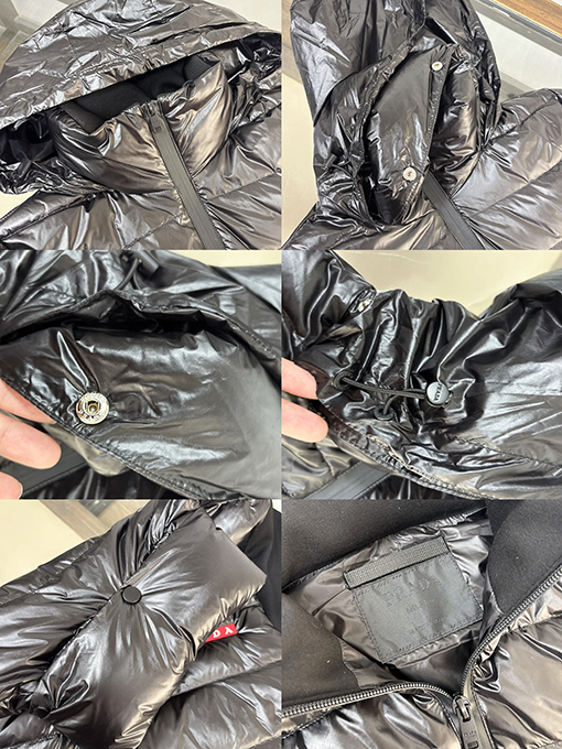 商品说明 | プラダの最新プレフォール25コレクションから、ニットダウンパネルのフード付きジャケットが登場。テクニカルなデザインとスタイリッシュな美学を融合させた、高級感あふれる逸品です。防水・防風性のあるリサイクルナイロンを使用し、軽量ながらも抜群の保温性と保護力を発揮するこのジャケットは、プラダならではの機能美を体現しています。