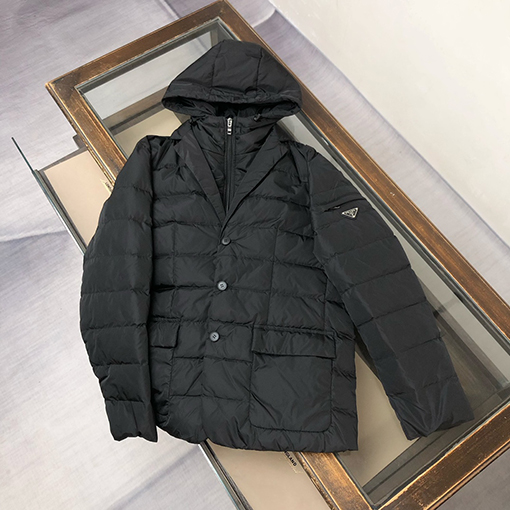 商品说明 | プラダの2025年秋冬コレクションは、ミニマルでありながらスタイリッシュなデザインランゲージを再び採用。ブレザーカラーを配した高密度ナイロンジャケットスタイルのダウンジャケットが登場。クラシックなビジネスシルエットと機能的でテクニカルな素材をシームレスに融合させ、伝統とモダンさのエレガントなバランスを実現しています。都会的な現代男性の冬のワードローブに欠かせない、プレミアムなアイテムです。 |