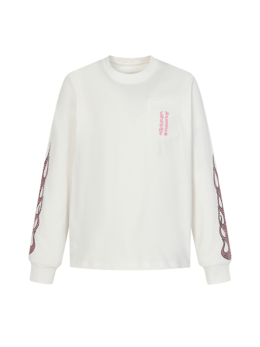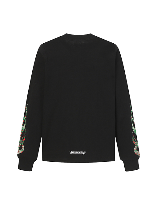 商品说明 | クロムハーツから、秋冬の新作ヒット商品、サンスクリット語プリントのロングスリーブシャツが登場。クラシックなストリートウェアと東洋のシンボルの神秘的な美しさを融合させたこのシャツは、トレンドを先導するビジュアルの主役となっています。280gのヘビーウェイトダブルヤーンピュアコットンを使用し、独自の織りと染色で仕上げたこのシャツは、しっかりとした風合いと繊細な肌触りを兼ね備え、しっかりとした快適な着心地を実現しています。 |