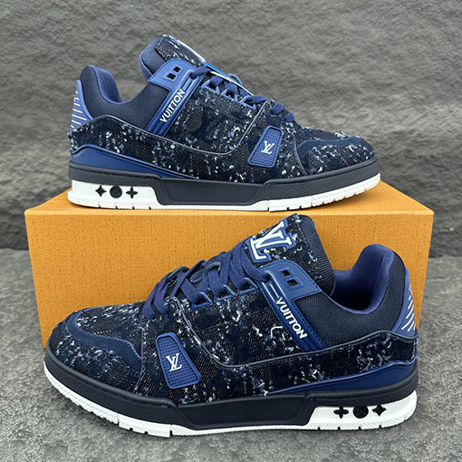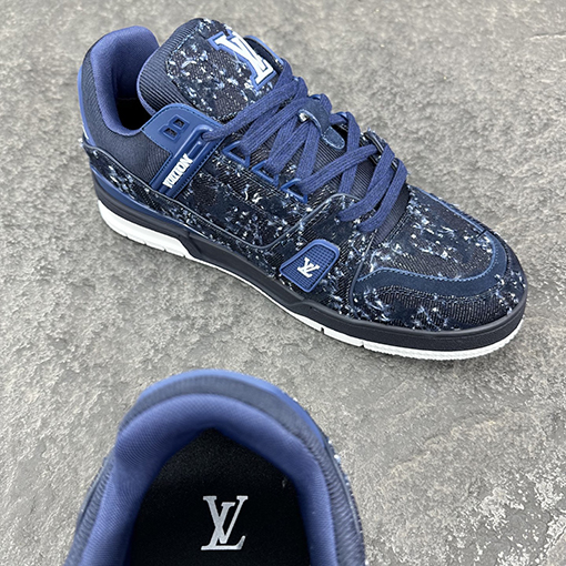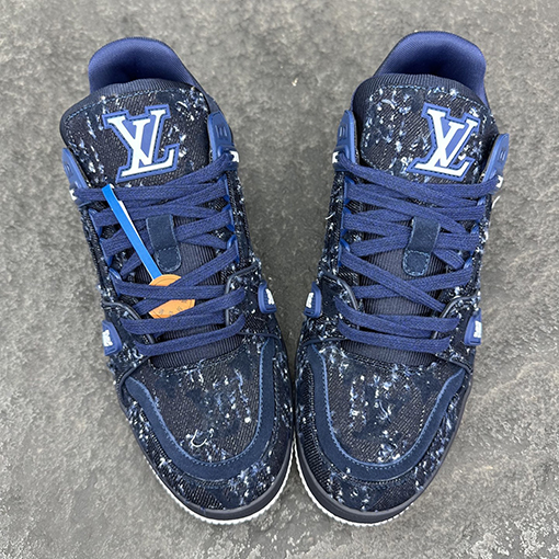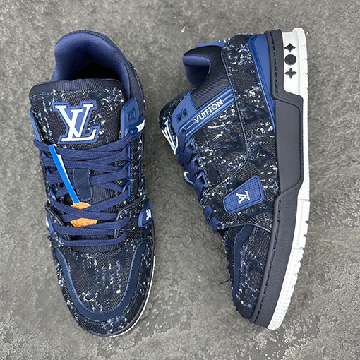 商品说明 | 2025年秋冬コレクションから新たに登場したルイヴィトントレーナースニーカーは、ダミエデニムと滑らかな牛革のパッチワークデザインが特徴で、独特のレイヤードルックとランウェイにふさわしいインパクトのあるビジュアルを生み出しています。レトロなバスケットボールカルチャーにインスピレーションを受け、ブランドの高度なカスタムクラフトマンシップと融合したこのシューズは、現代のラグジュアリースポーツウェアを完璧に体現しています。 |