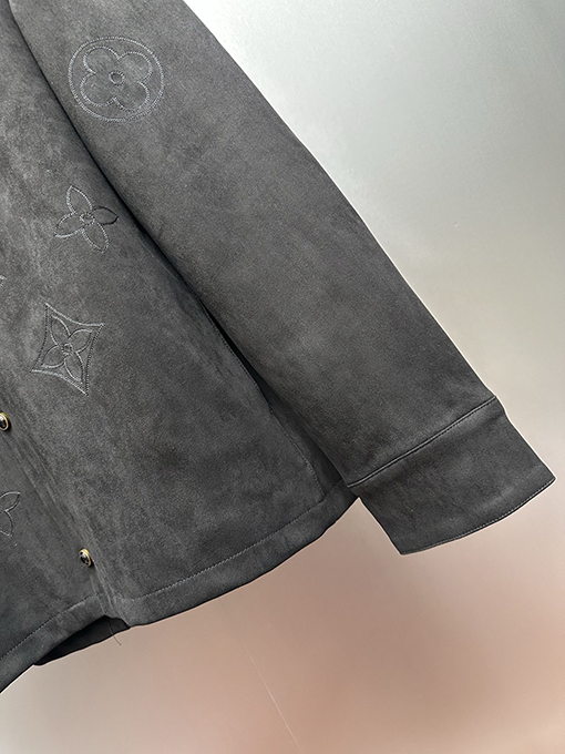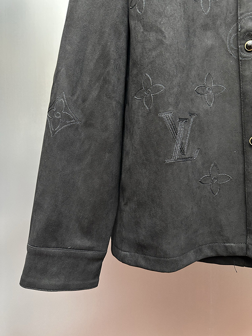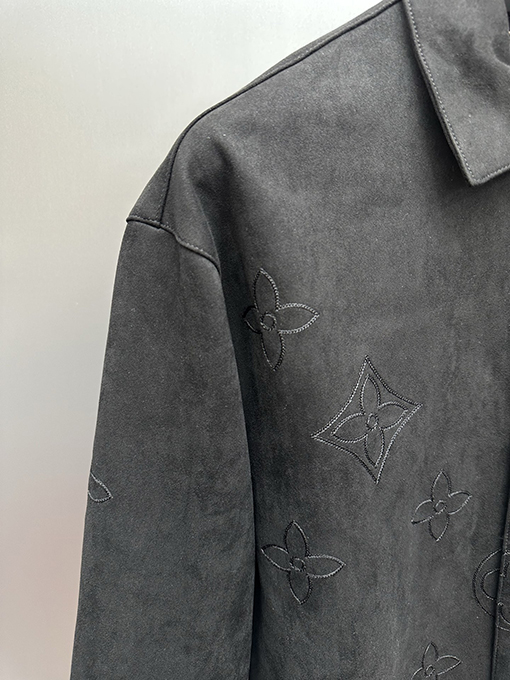 商品说明 | ルイ・ヴィトンの26SS新作、刺繍入りスエードの長袖オーバーシャツは、ブランドを象徴するハイエンドなスタイルと精巧な職人技で、現代男性のエレガンスを再解釈しています。輸入された高級スエードのみを使用し、滑らかでベルベットのような質感と柔らかな光沢を誇り、自然光と屋外の両方で洗練された上品な質感を演出します。 |