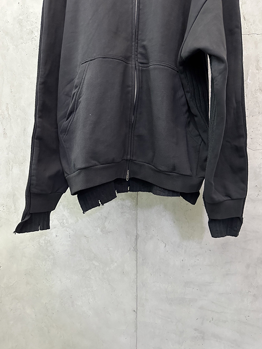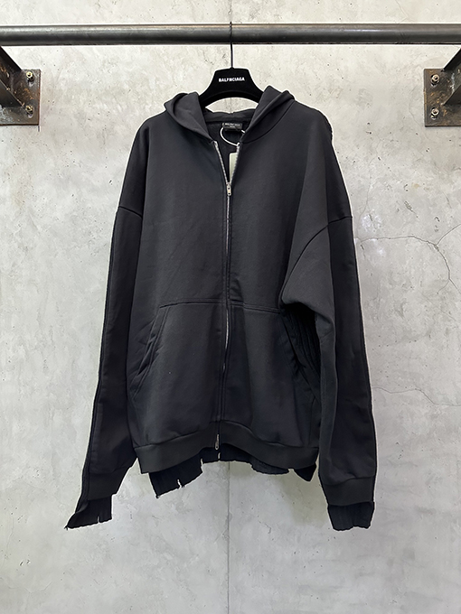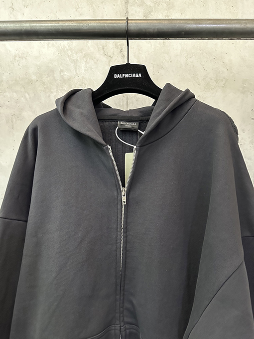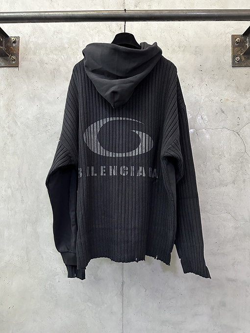 商品说明 | バレンシアガは、2024年秋冬コレクションで話題を呼んだパッチワークセーターとフード付きコートで、「ストリート・リュクス」の概念を再定義します。コートは大胆なツーピース構造で、片面はダメージ加工のスウェット素材、もう片面はニット素材のプリントセーターをパッチワークで表現しています。 |